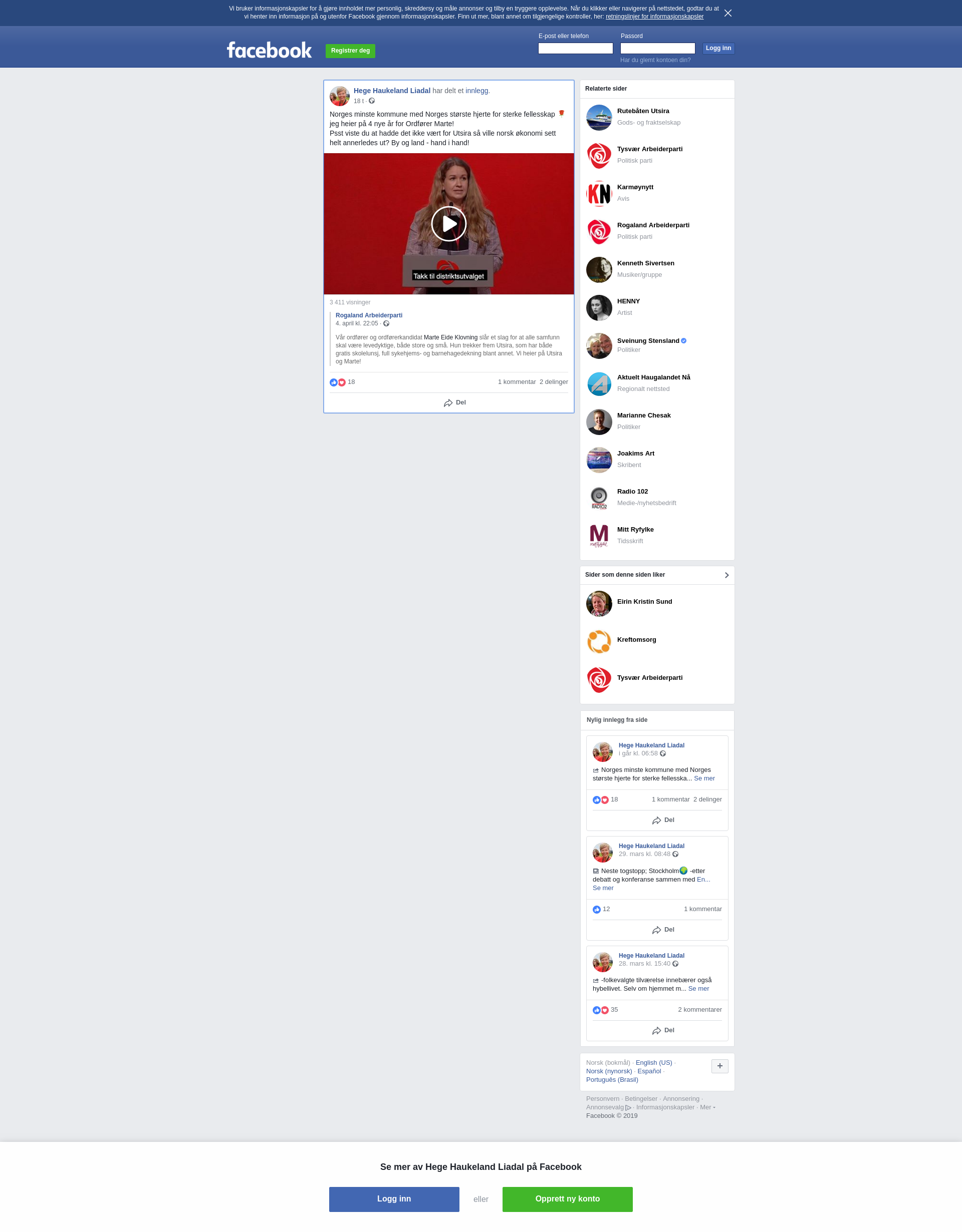 Vår ordfører og ordførerkandidat Marte Eide Klovning slår et slag for at alle samfunn skal være levedyktige, både store og små. Hun trekker frem Utsira, som har både gratis skolelunsj, full sykehjems- og barnehagedekning blant annet. Vi heier på Utsira og Marte!