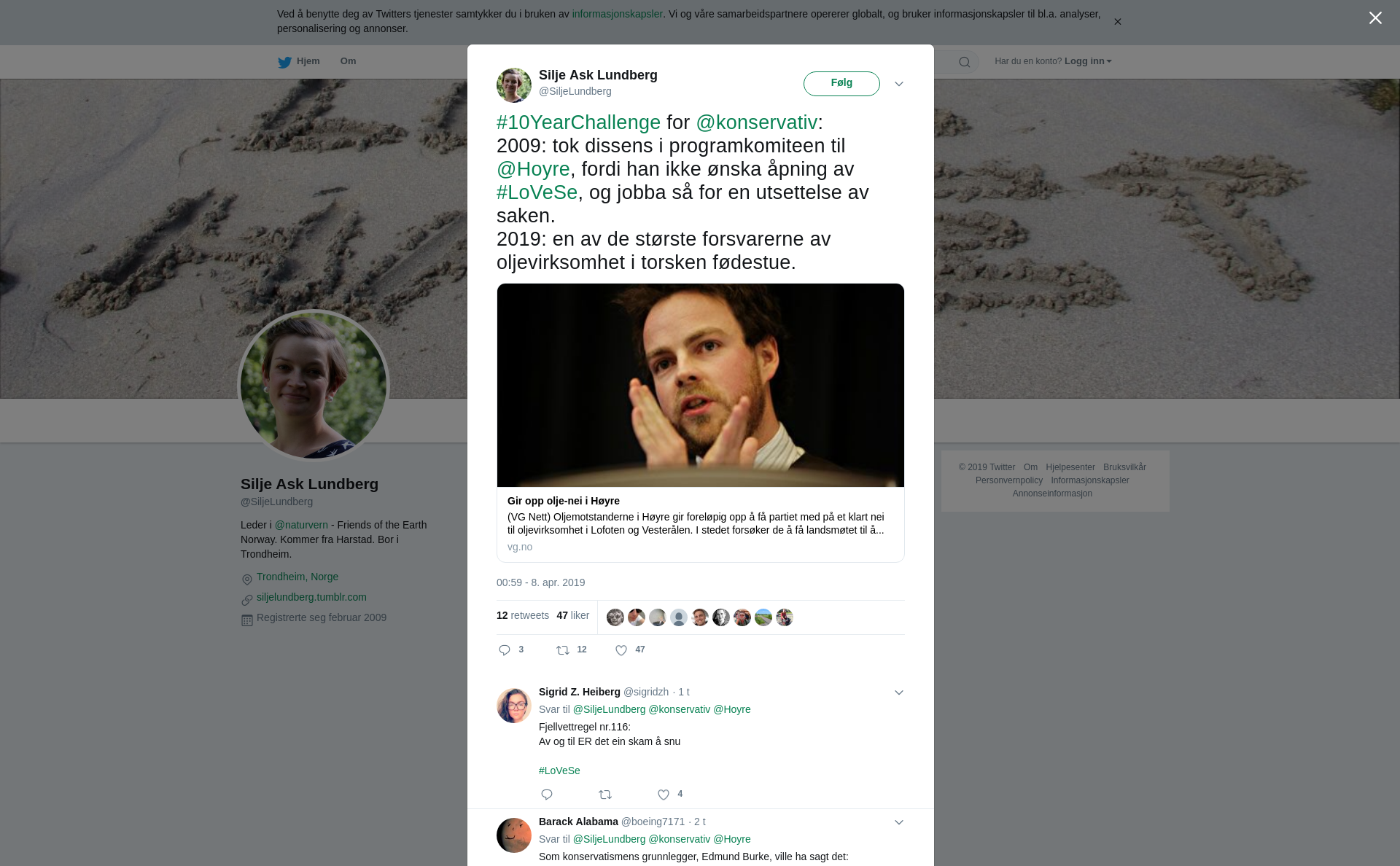 RT @SiljeLundberg: #10YearChallenge for @konservativ: 2009: tok dissens i programkomiteen til @Hoyre, fordi han ikke ønska åpning av #LoVe…