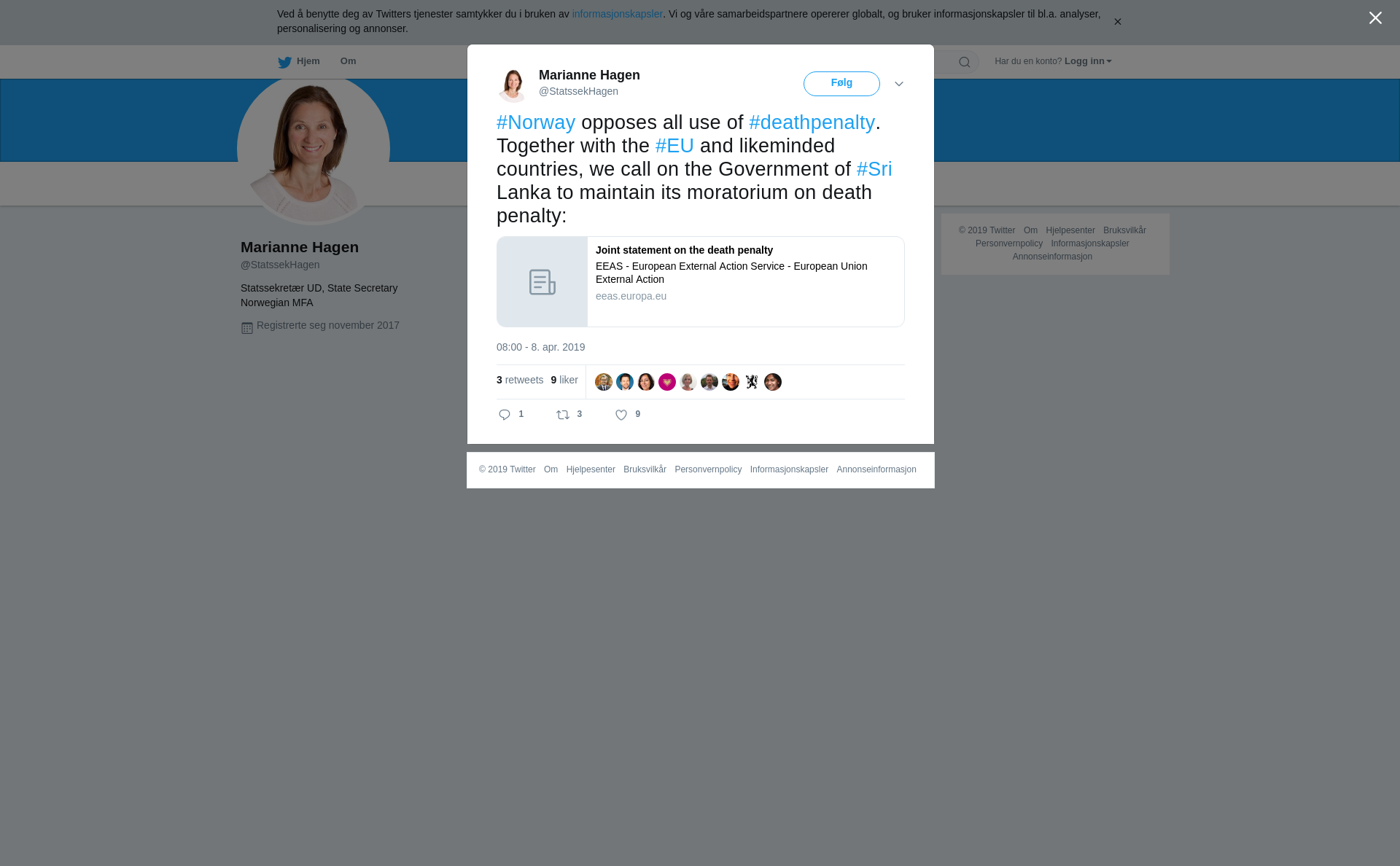 RT @StatssekHagen: #Norway opposes all use of #deathpenalty. Together with the #EU and likeminded countries, we call on the Government of #Sri Lanka to maintain its moratorium on death penalty: https://t.co/rOv13zbT1K