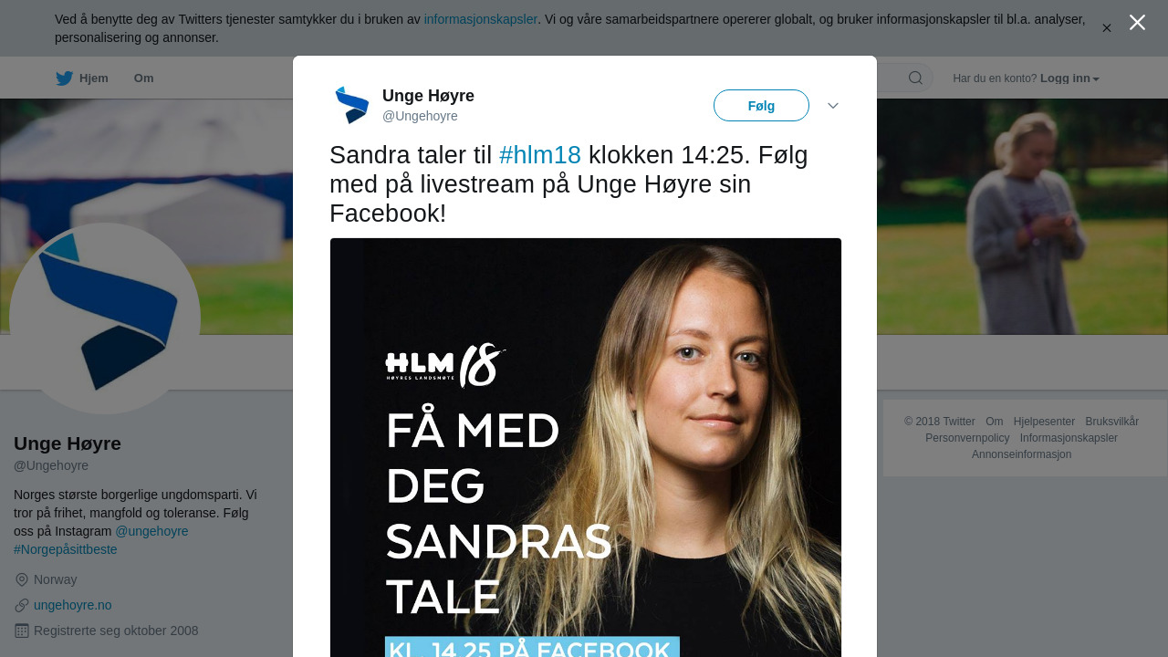 RT @Ungehoyre: Sandra taler til #hlm18 klokken 14:25. Følg med på livestream på Unge Høyre sin Facebook! https://t.co/jFrFmxpL2S