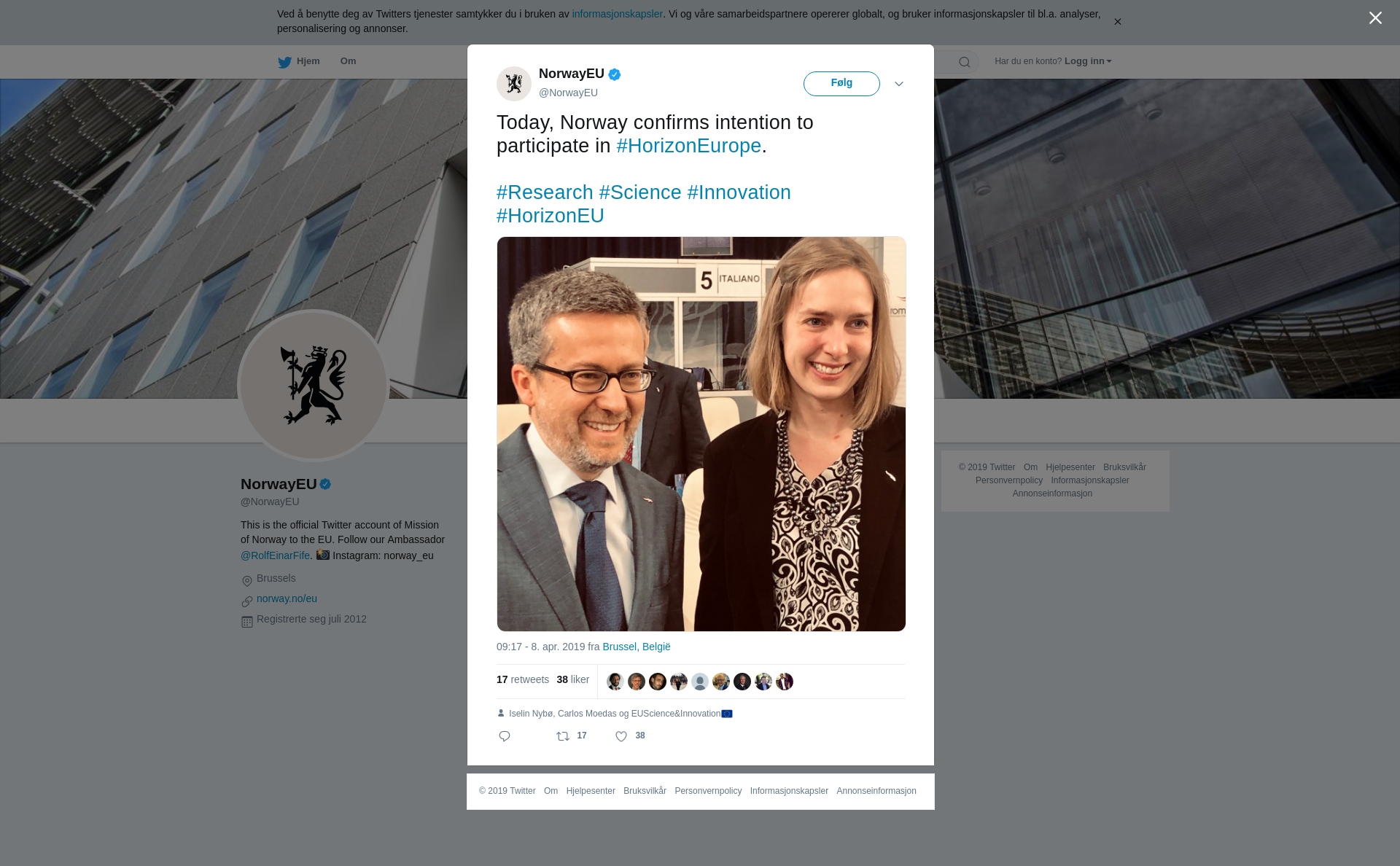 RT @NorwayEU: Today, Norway confirms intention to participate in #HorizonEurope. #Research #Science #Innovation #HorizonEU https://t.co/s…