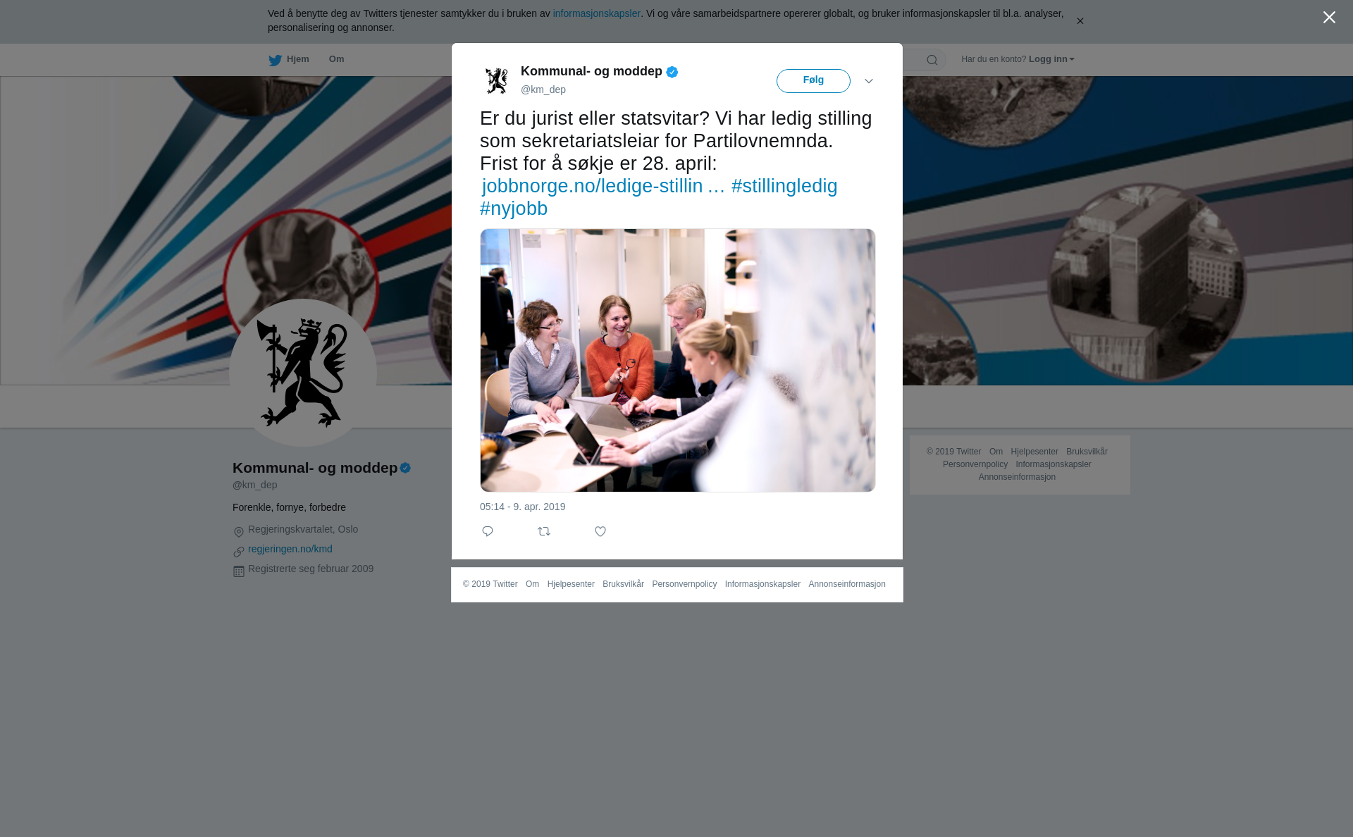 Stillingstittel: Seniorrådgiver - jurist/statsviter (168292), Arbeidsgiver: Kommunal- og moderniseringsdepartementet, Søknadsfrist: 28. april 2019