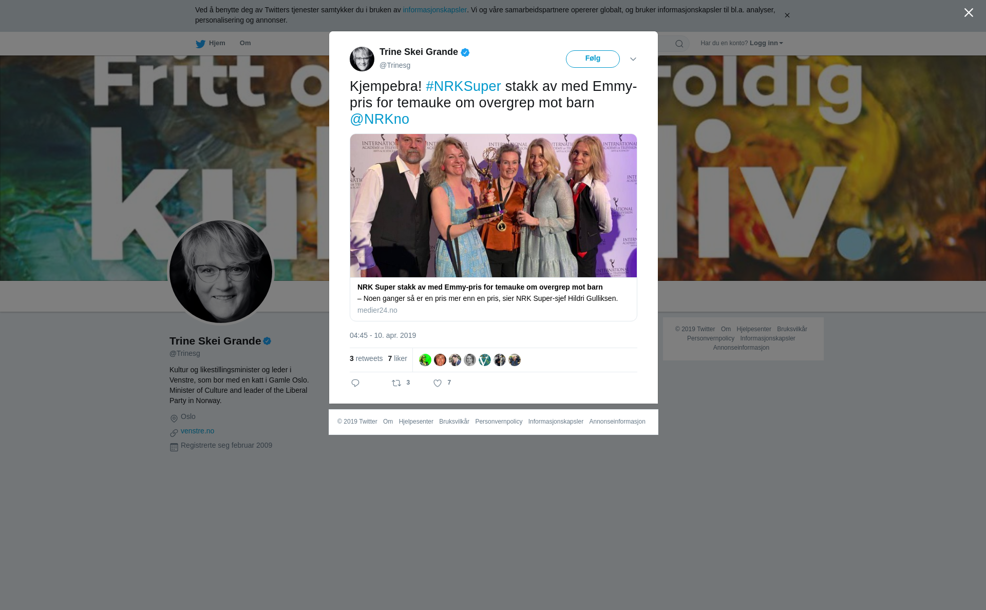 Kjempebra! #NRKSuper stakk av med Emmy-pris for temauke om overgrep mot barn @NRKno https://t.co/6FYiG1l3gW
