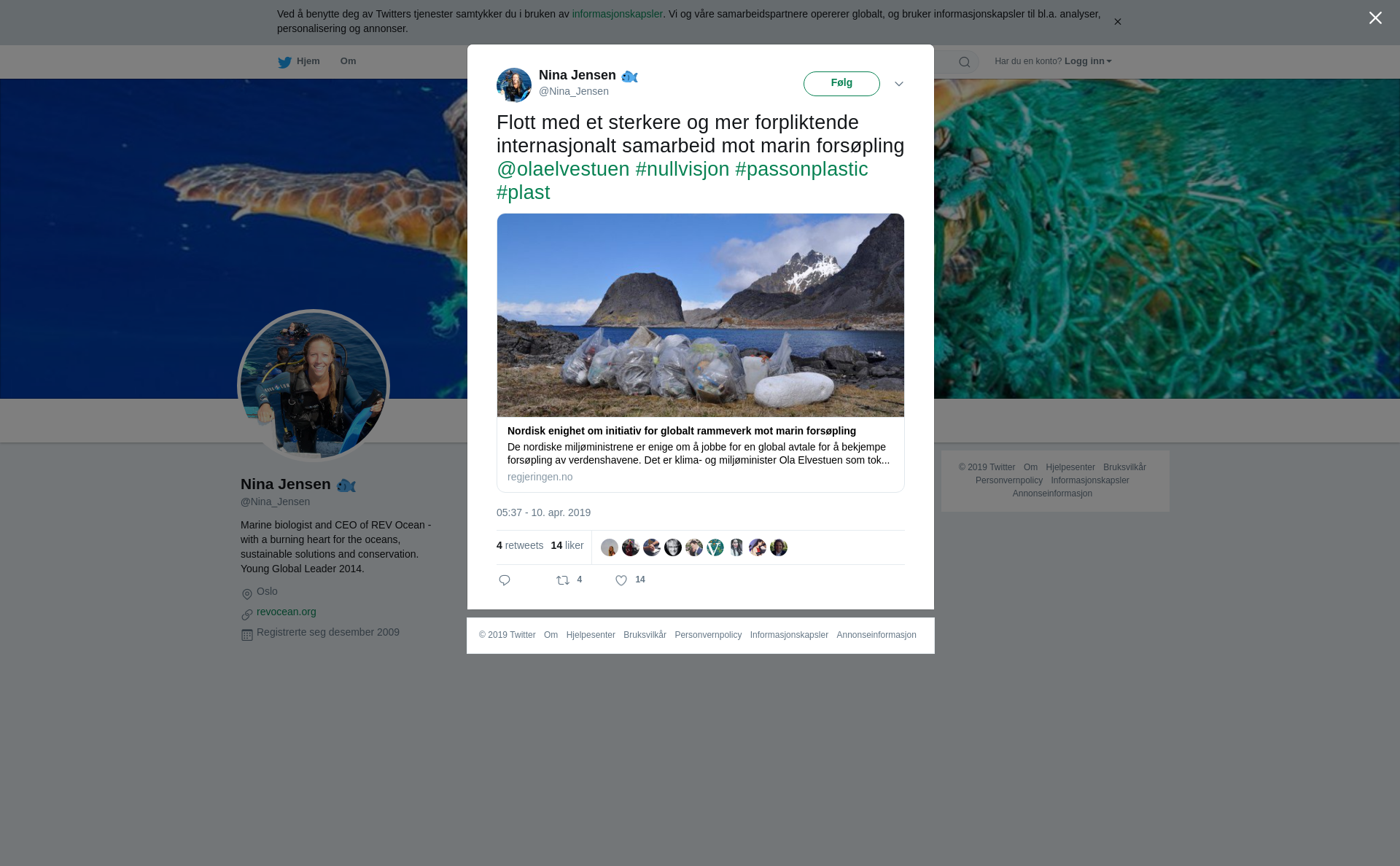 RT @Nina_Jensen: Flott med et sterkere og mer forpliktende internasjonalt samarbeid mot marin forsøpling @olaelvestuen #nullvisjon #passonplastic #plast https://t.co/F7JlgO7GjS