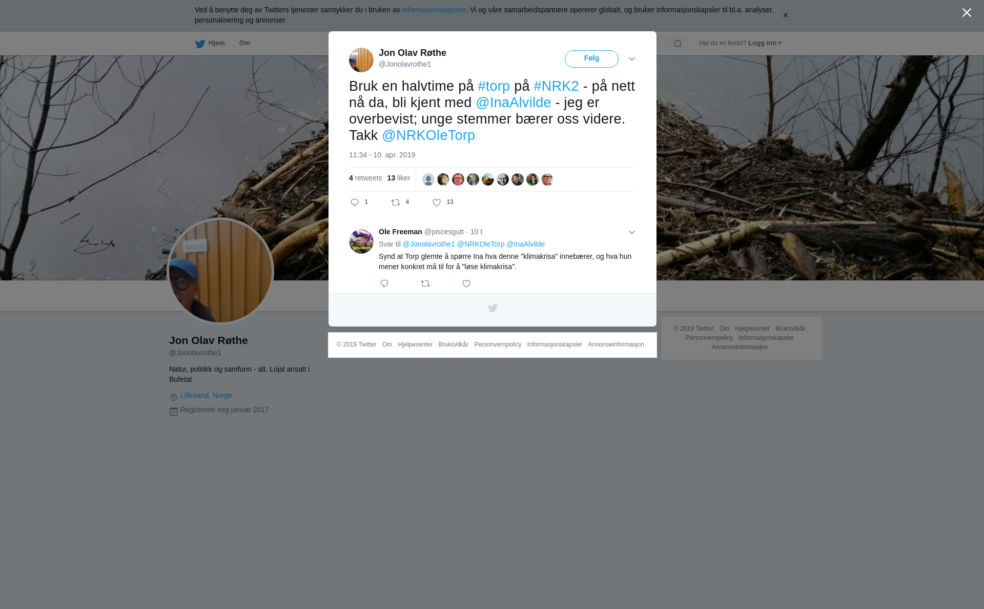 RT @Jonolavrothe1: Bruk en halvtime på #torp på #NRK2 - på nett nå da, bli kjent med @InaAlvilde - jeg er overbevist; unge stemmer bærer oss videre. Takk @NRKOleTorp