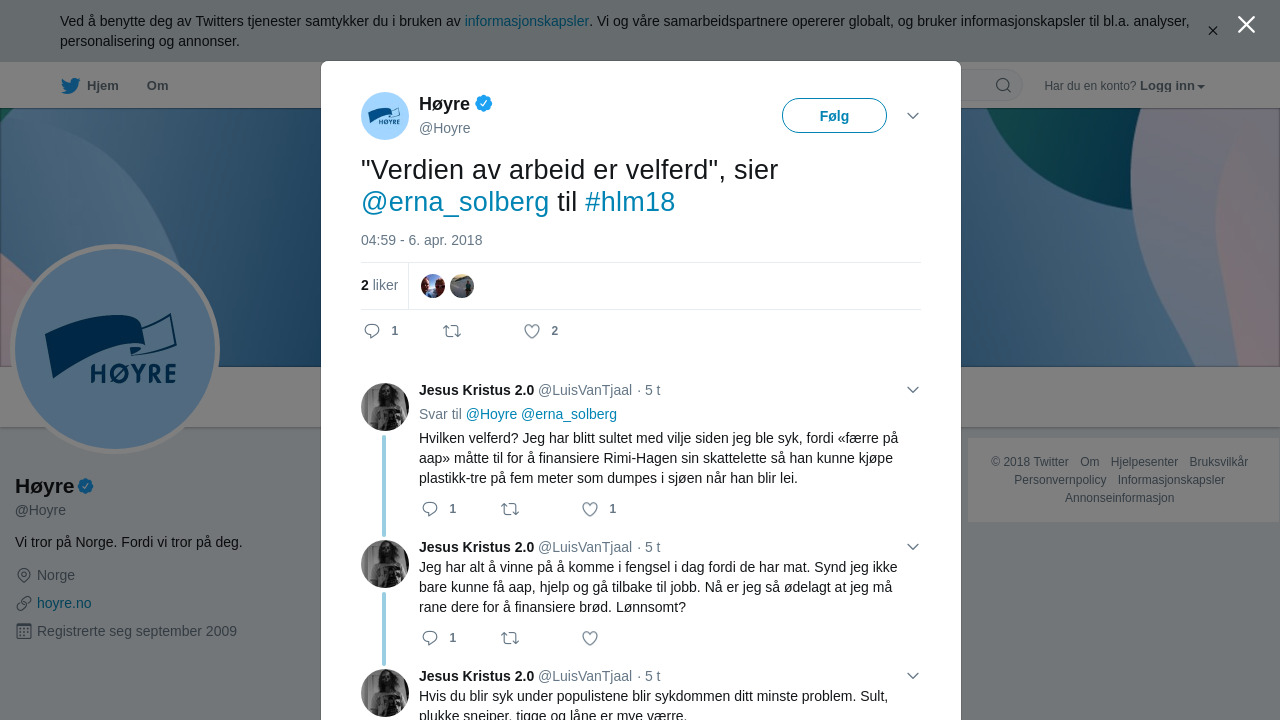 "Verdien av arbeid er velferd", sier @erna_solberg til #hlm18