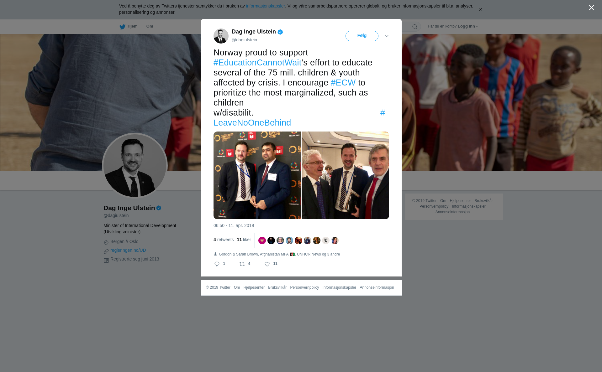 Norway proud to support #EducationCannotWait’s effort to educate several of the 75 mill. children & youth affected by crisis. I encourage #ECW to prioritize the most marginalized, such as children w/disabilit. #LeaveNoOneBehind https://t.co/lYE81UGSYk