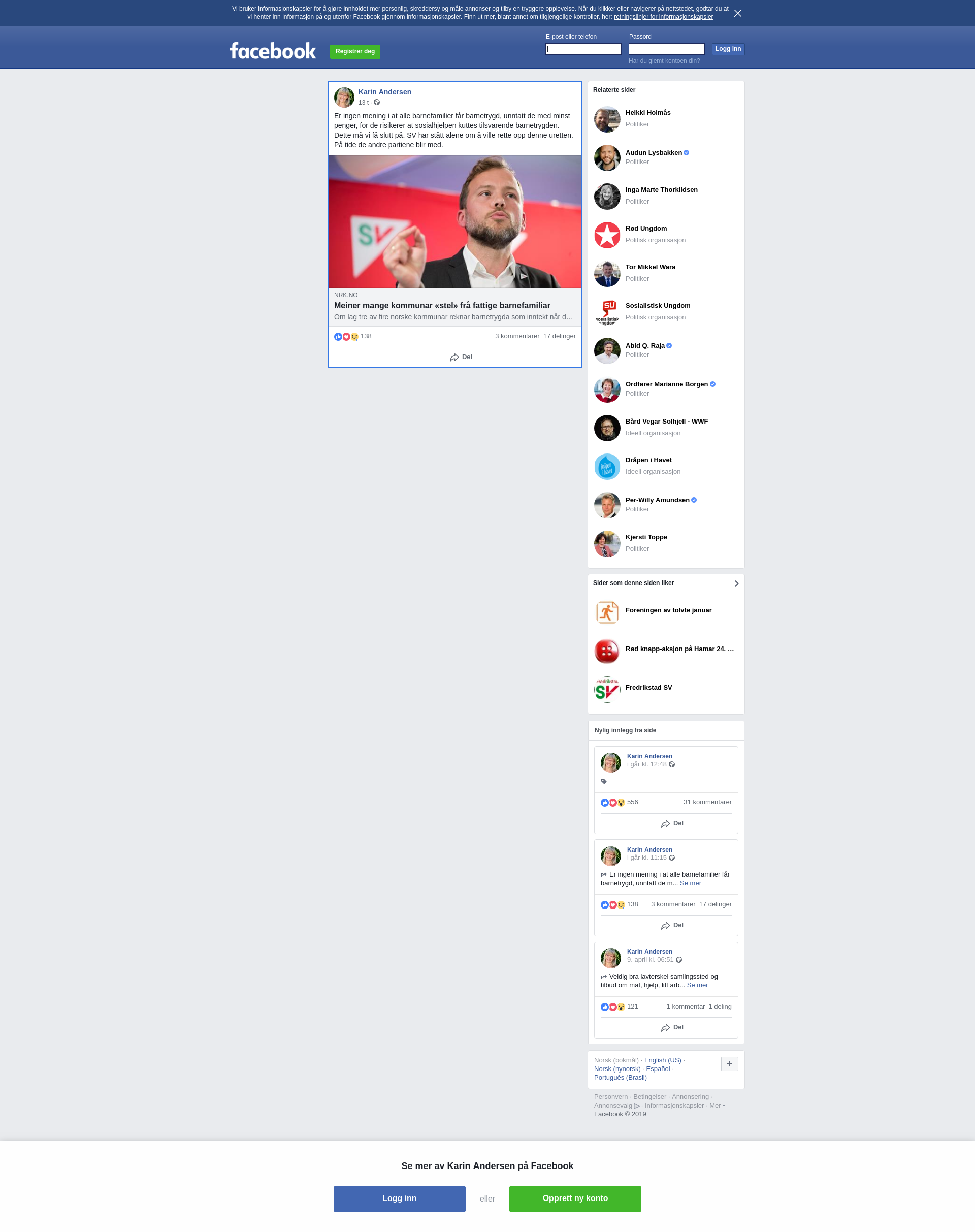 Er ingen mening i at alle barnefamilier får barnetrygd, unntatt de med minst penger, for de risikerer at sosialhjelpen kuttes tilsvarende barnetrygden. Dette må vi få slutt på. SV har stått alene om å ville rette opp denne uretten. På tide de andre partiene blir med.
