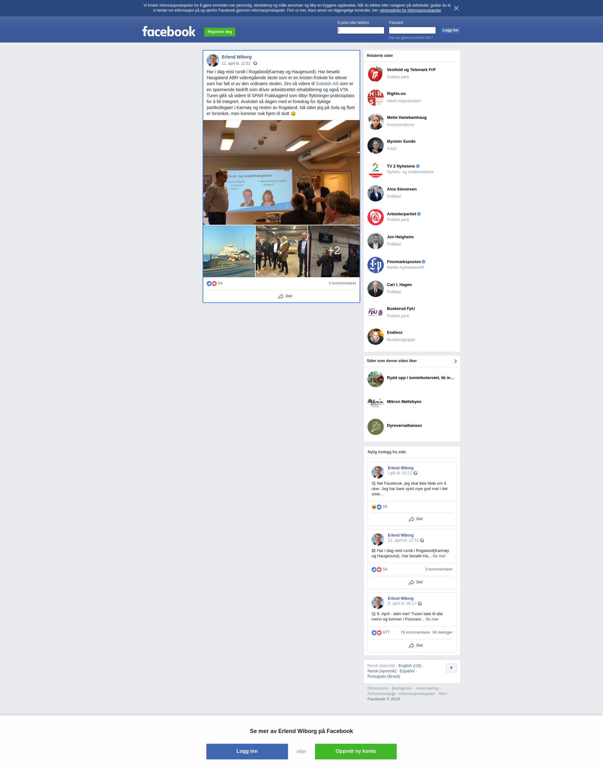 Har i dag reist rundt i Rogaland(Karmøy og Haugesund). Har besøkt Haugaland ABR videregående skole som er en kristen friskole for elever som har falt ut av den ordinære skolen. Dro så videre til Solstein AS som er en spennende bedrift som driver arbeidsrettet rehabilitering og også VTA. Turen gikk så videre til SPAR Frakkagjerd som tilbyr flyktninger praksisplass for å bli integrert. Avsluttet så dagen med et foredrag for dyktige partikollegaer i Karmøy og resten av Rogaland. Nå sitter jeg på Sola og flyet er forsinket, men kommer nok hjem til slutt 🙂