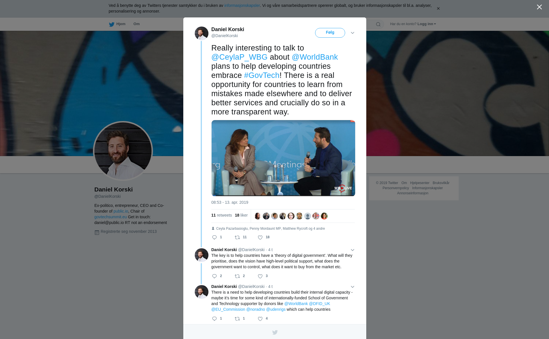RT @DanielKorski: Really interesting to talk to @CeylaP_WBG about @WorldBank plans to help developing countries embrace #GovTech! There is a real opportunity for countries to learn from mistakes made elsewhere and to deliver better services and crucially do so in a more transparent way. https://t.co/oIh4HKqO9k