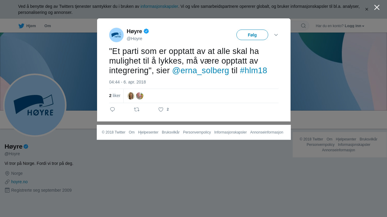 "Et parti som er opptatt av at alle skal ha mulighet til å lykkes, må være opptatt av integrering", sier @erna_solberg til #hlm18