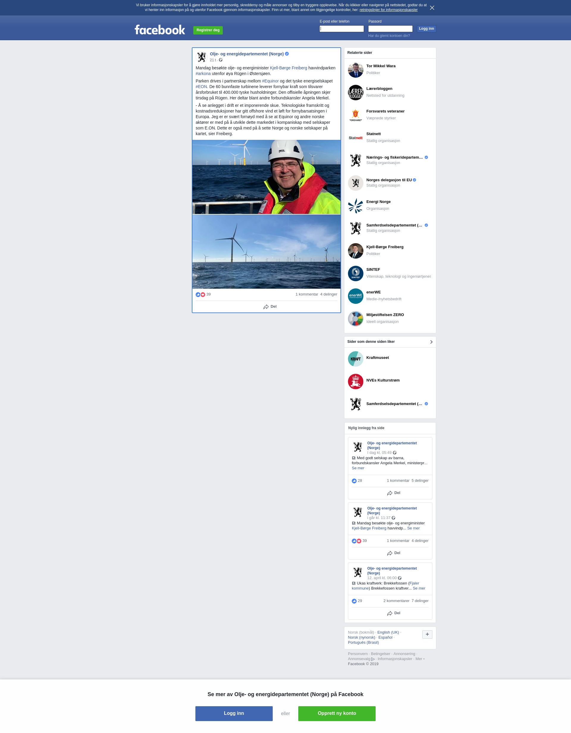Mandag besøkte olje- og energiminister Kjell-Børge Freiberg havvindparken #arkona utenfor øya Rügen i Østersjøen.