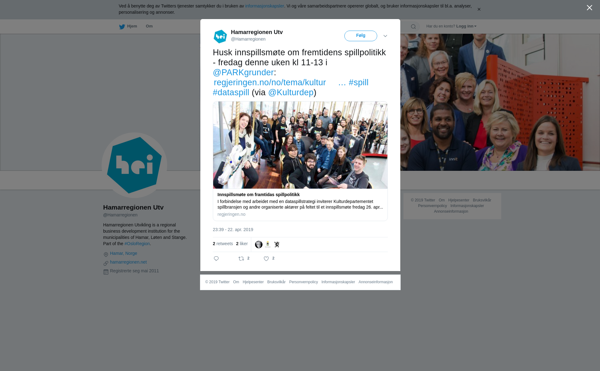 RT @Hamarregionen: Husk innspillsmøte om fremtidens spillpolitikk - fredag denne uken kl 11-13 i @PARKgrunder: https://t.co/8U7mpf3iEL #spill #dataspill (via @Kulturdep)