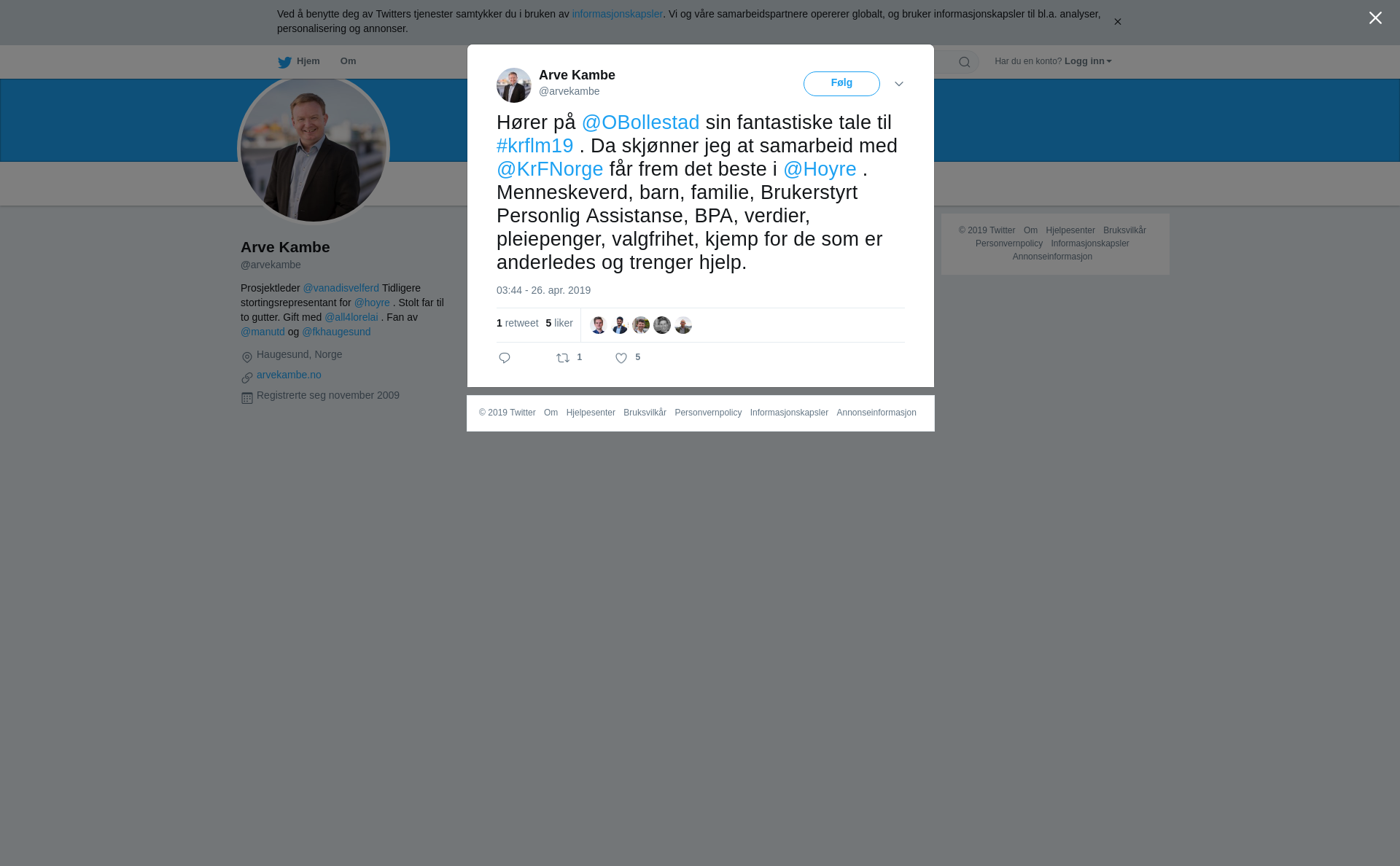 RT @arvekambe: Hører på @OBollestad sin fantastiske tale til #krflm19 . Da skjønner jeg at samarbeid med @KrFNorge får frem det beste i @Hoyre . Menneskeverd, barn, familie, Brukerstyrt Personlig Assistanse, BPA, verdier, pleiepenger, valgfrihet, kjemp for de som er anderledes og trenger hjelp.