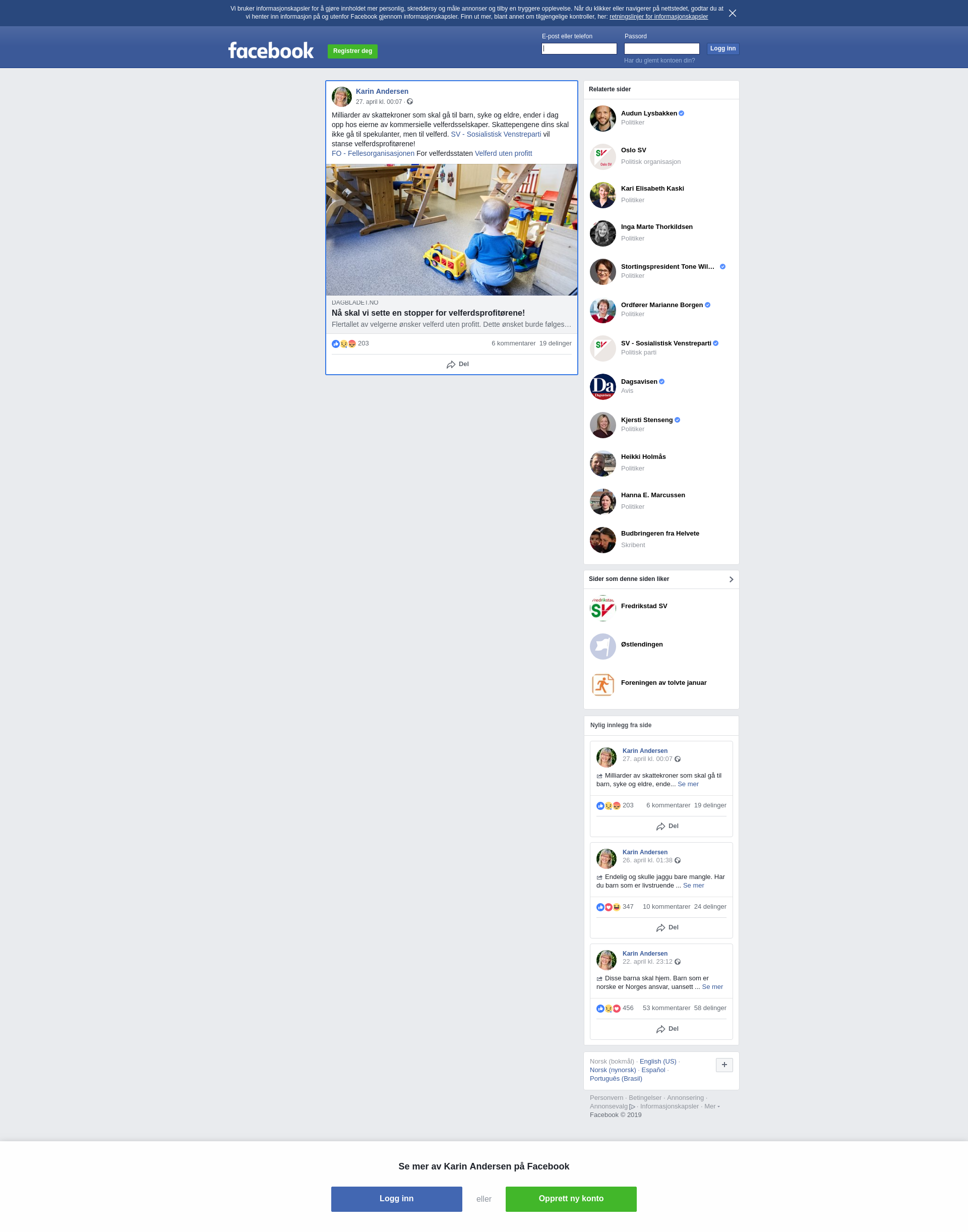 Milliarder av skattekroner som skal gå til barn, syke og eldre, ender i dag opp hos eierne av kommersielle velferdsselskaper. Skattepengene dins skal ikke gå til spekulanter, men til velferd. SV - Sosialistisk Venstreparti vil stanse velferdsprofitørene!