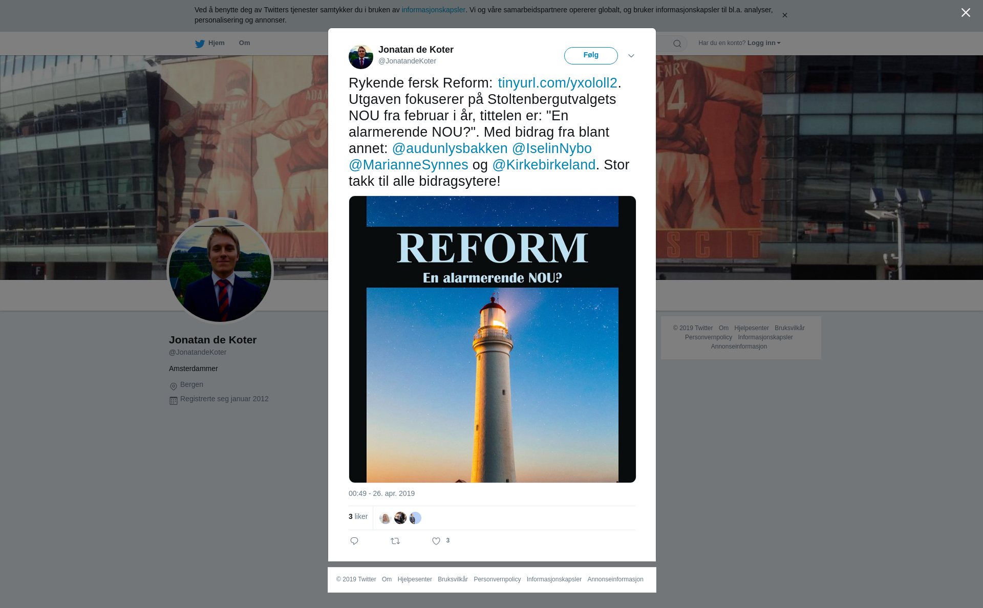 RT @JonatandeKoter: Rykende fersk Reform: https://t.co/JyVyIqQ6Wh. Utgaven fokuserer på Stoltenbergutvalgets NOU fra februar i år, tittelen er: "En alarmerende NOU?". Med bidrag fra blant annet: @audunlysbakken @IselinNybo @MarianneSynnes og @Kirkebirkeland. Stor takk til alle bidragsytere! https://t.co/WFzlAp8B88