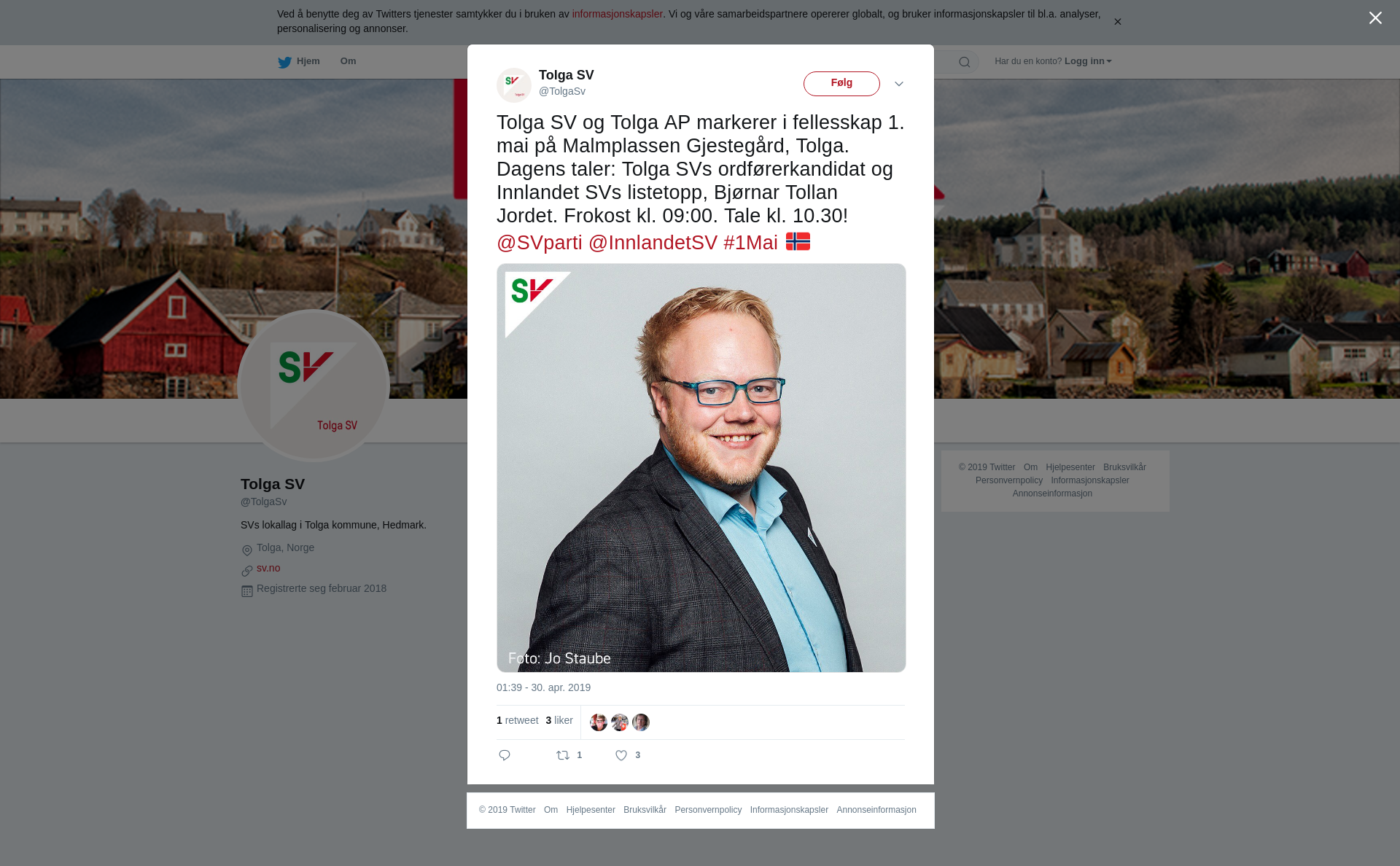 RT @TolgaSv: Tolga SV og Tolga AP markerer i fellesskap 1. mai på Malmplassen Gjestegård, Tolga. Dagens taler: Tolga SVs ordførerkandidat og Innlandet SVs listetopp, Bjørnar Tollan Jordet. Frokost kl. 09:00. Tale kl. 10.30! @SVparti @InnlandetSV #1Mai 🇳🇴 https://t.co/QFqLCZxQzg