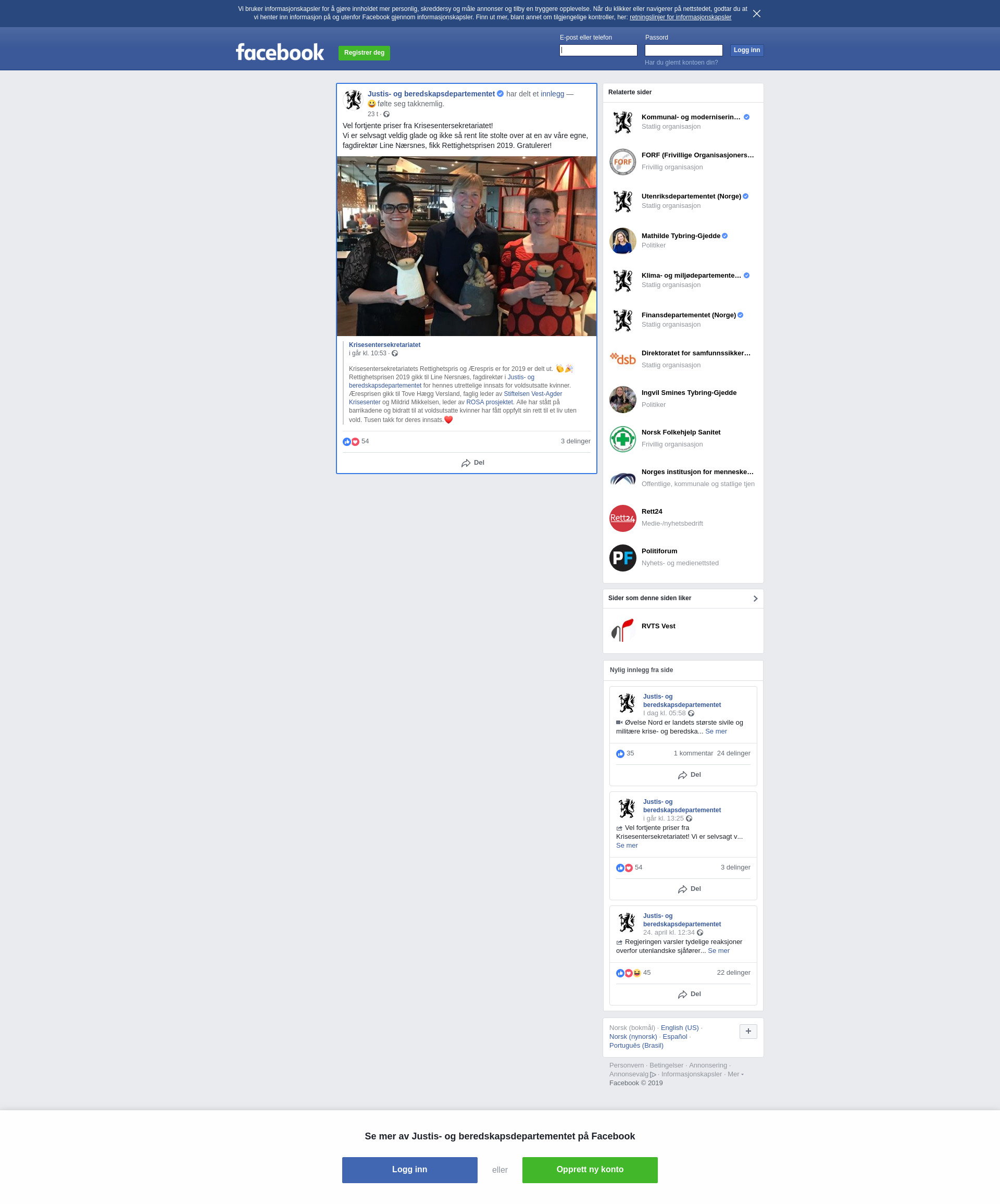 Krisesentersekretariatets Rettighetspris og Ærespris er for 2019 er delt ut. 👏🎉Rettighetsprisen 2019 gikk til Line Nersnæs, fagdirektør i Justis- og beredskapsdepartementet for hennes utrettelige innsats for voldsutsatte kvinner. Æresprisen gikk til Tove Hægg Versland, leder av Stiftelsen Vest-Agder Krisesenter og Mildrid Mikkelsen, leder av ROSA prosjektet. Alle har stått på barrikadene og bidratt til at voldsutsatte kvinner har fått oppfylt sin rett til et liv uten vold. Tusen takk for deres innsats.❤️