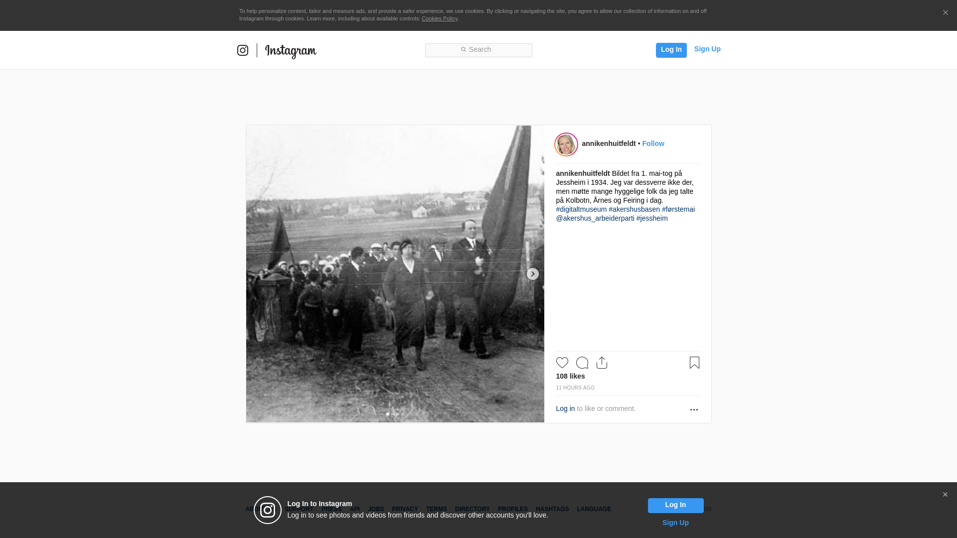 Bildet fra 1. mai-tog på Jessheim i 1934. Jeg var dessverre ikke der, men møtte mange hyggelige folk da jeg talte på Kolbotn, Årnes og Feiring i dag. #digitaltmuseum #akershusbasen #førstemai @akershus_arbeiderparti #jessheim