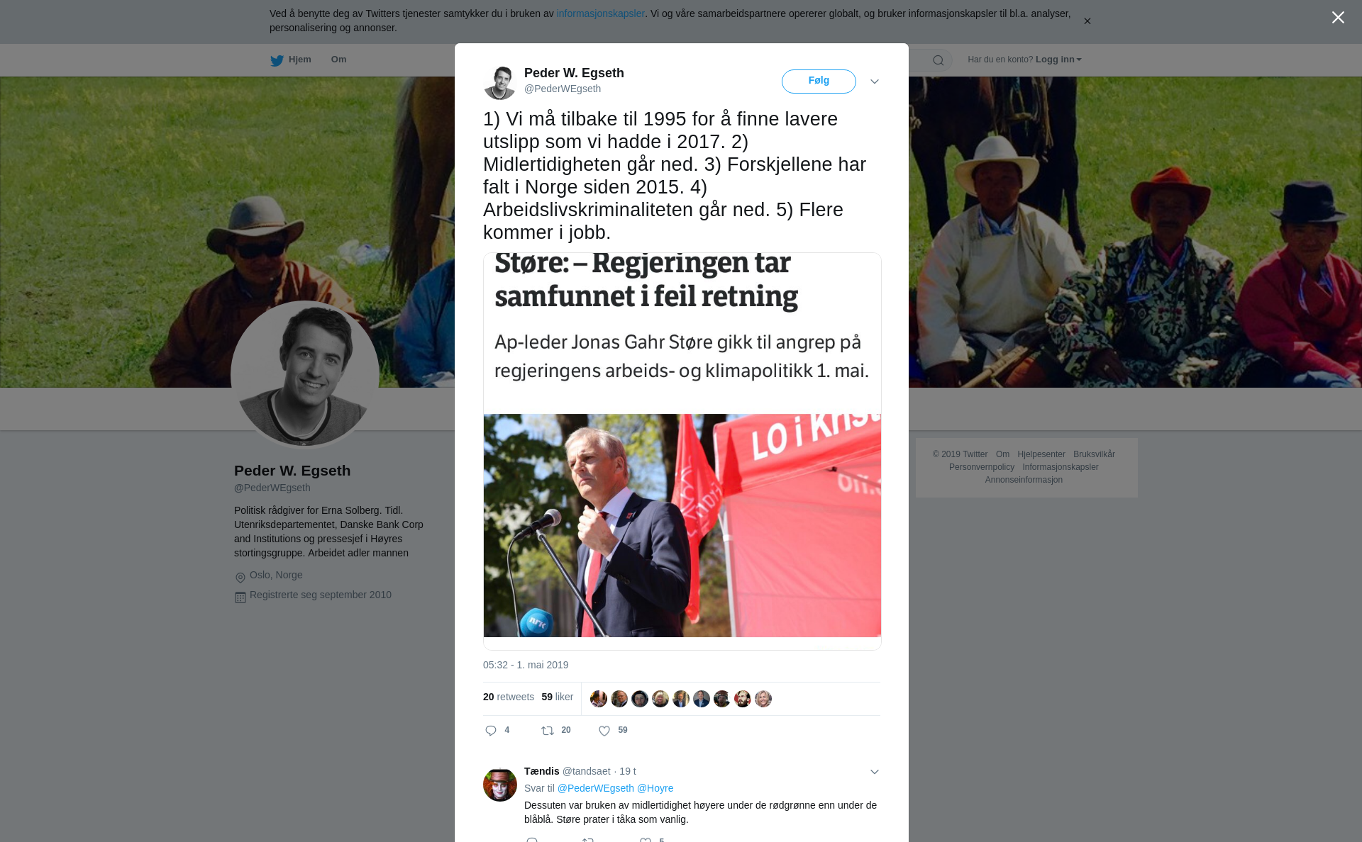 RT @PederWEgseth: 1) Vi må tilbake til 1995 for å finne lavere utslipp som vi hadde i 2017. 2) Midlertidigheten går ned. 3) Forskjellene har falt i Norge siden 2015. 4) Arbeidslivskriminaliteten går ned. 5) Flere kommer i jobb. https://t.co/zHqvxZo5r6
