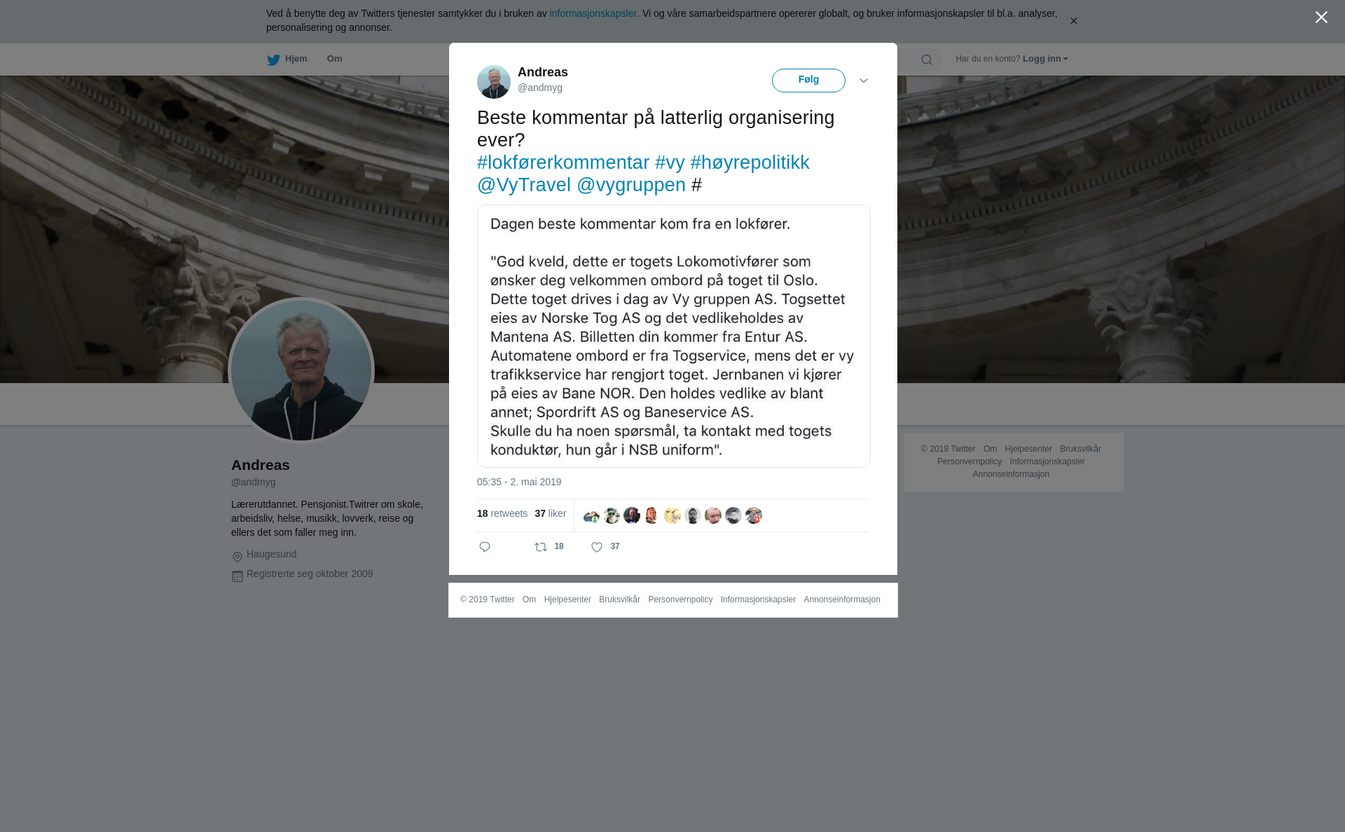 RT @andmyg: Beste kommentar på latterlig organisering ever? #lokførerkommentar #vy #høyrepolitikk @VyTravel @vygruppen # https://t.co/wY4Px…