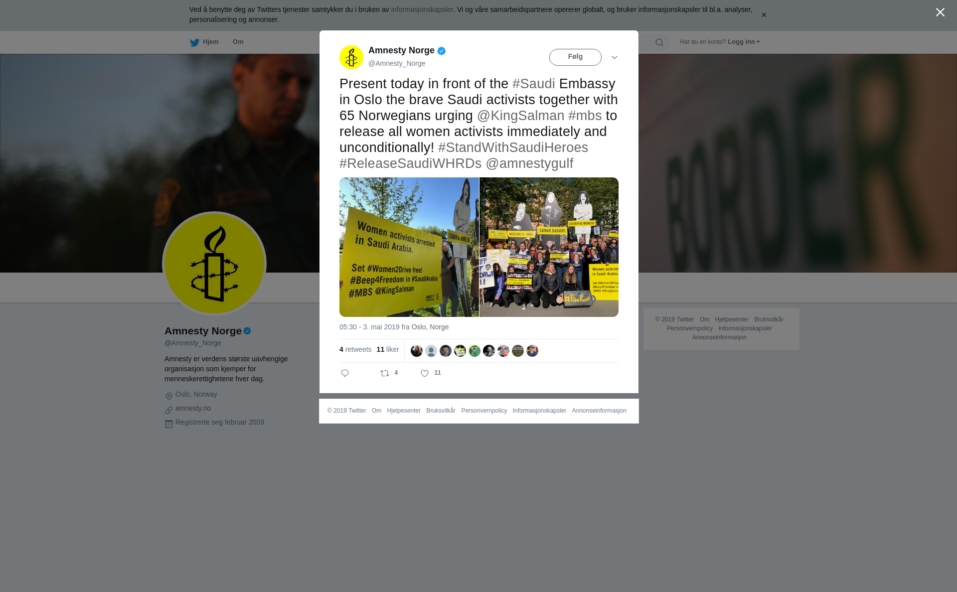 RT @Amnesty_Norge: Present today in front of the #Saudi Embassy in Oslo the brave Saudi activists together with 65 Norwegians urging @KingSalman #mbs to release all women activists immediately and unconditionally! #StandWithSaudiHeroes #ReleaseSaudiWHRDs @amnestygulf https://t.co/VuphsNAehr