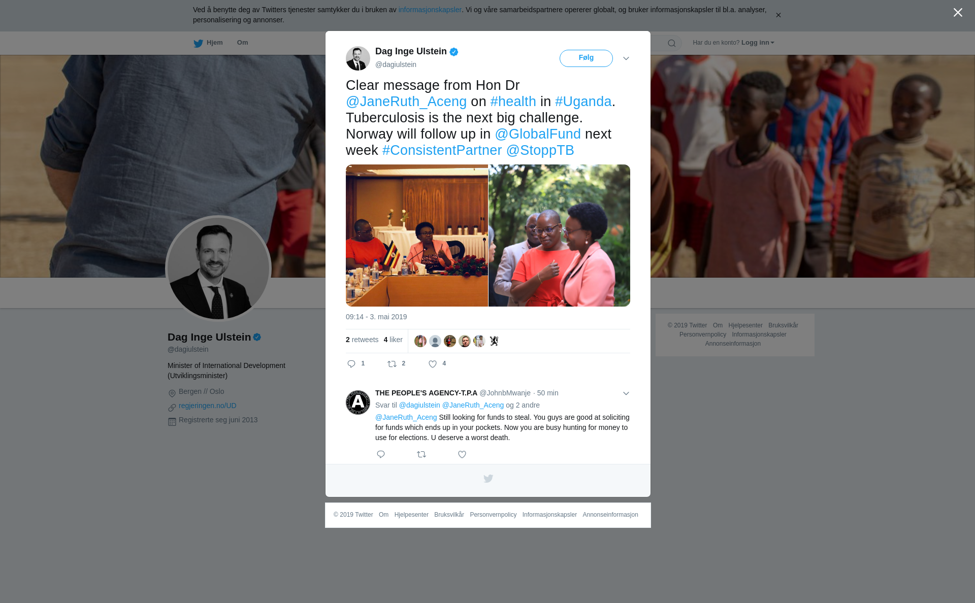 RT @dagiulstein: Clear message from Hon Dr @JaneRuth_Aceng on #health in #Uganda. Tuberculosis is the next big challenge. Norway will follow up in @GlobalFund next week #ConsistentPartner @StoppTB https://t.co/FtcxReCvrS