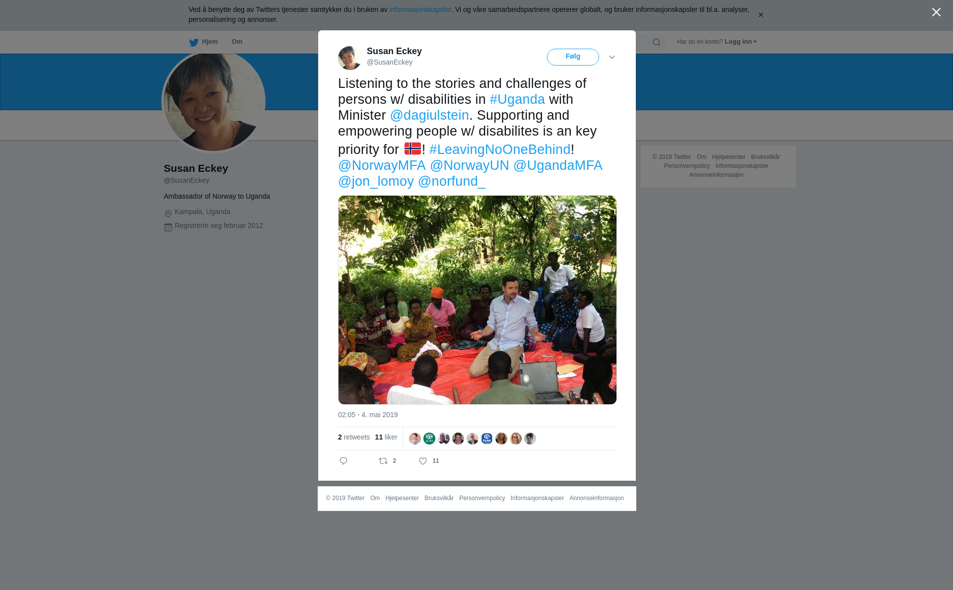 RT @SusanEckey: Listening to the stories and challenges of persons w/ disabilities in #Uganda with Minister @dagiulstein. Supporting and empowering people w/ disabilites is an key priority for 🇳🇴! #LeavingNoOneBehind! @NorwayMFA @NorwayUN @UgandaMFA @jon_lomoy @norfund_ https://t.co/vAZgpM8eLB