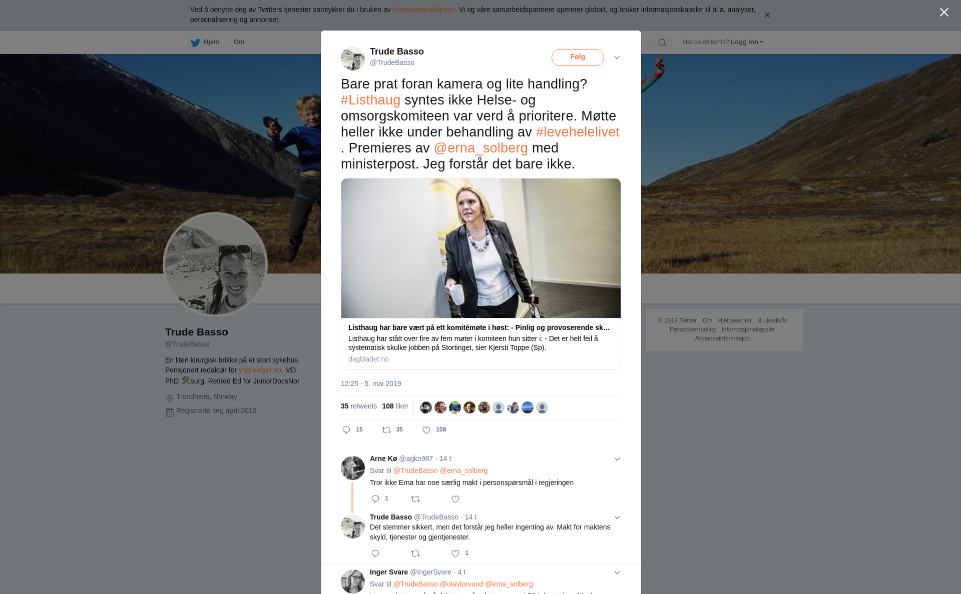 RT @TrudeBasso: Bare prat foran kamera og lite handling? #Listhaug syntes ikke Helse- og omsorgskomiteen var verd å prioritere. Møtte heller ikke under behandling av #levehelelivet . Premieres av @erna_solberg med ministerpost. Jeg forstår det bare ikke.
