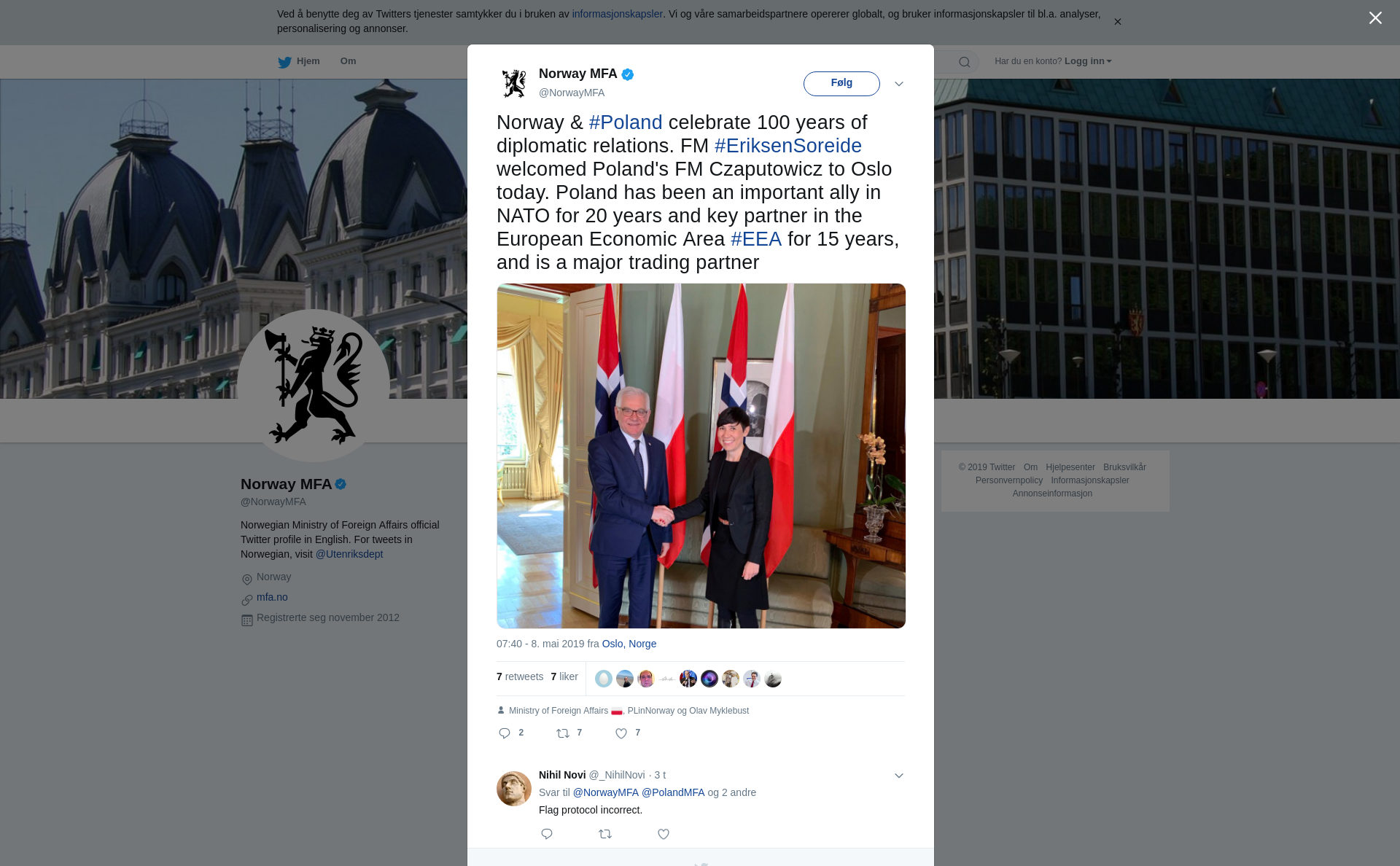 Norway & #Poland celebrate 100 years of diplomatic relations. FM #EriksenSoreide welcomed Poland's FM Czaputowicz to Oslo today. Poland has been an important ally in NATO for 20 years and key partner in the European Economic Area #EEA for 15 years, and is a major trading partner https://t.co/d9btlhjksr
