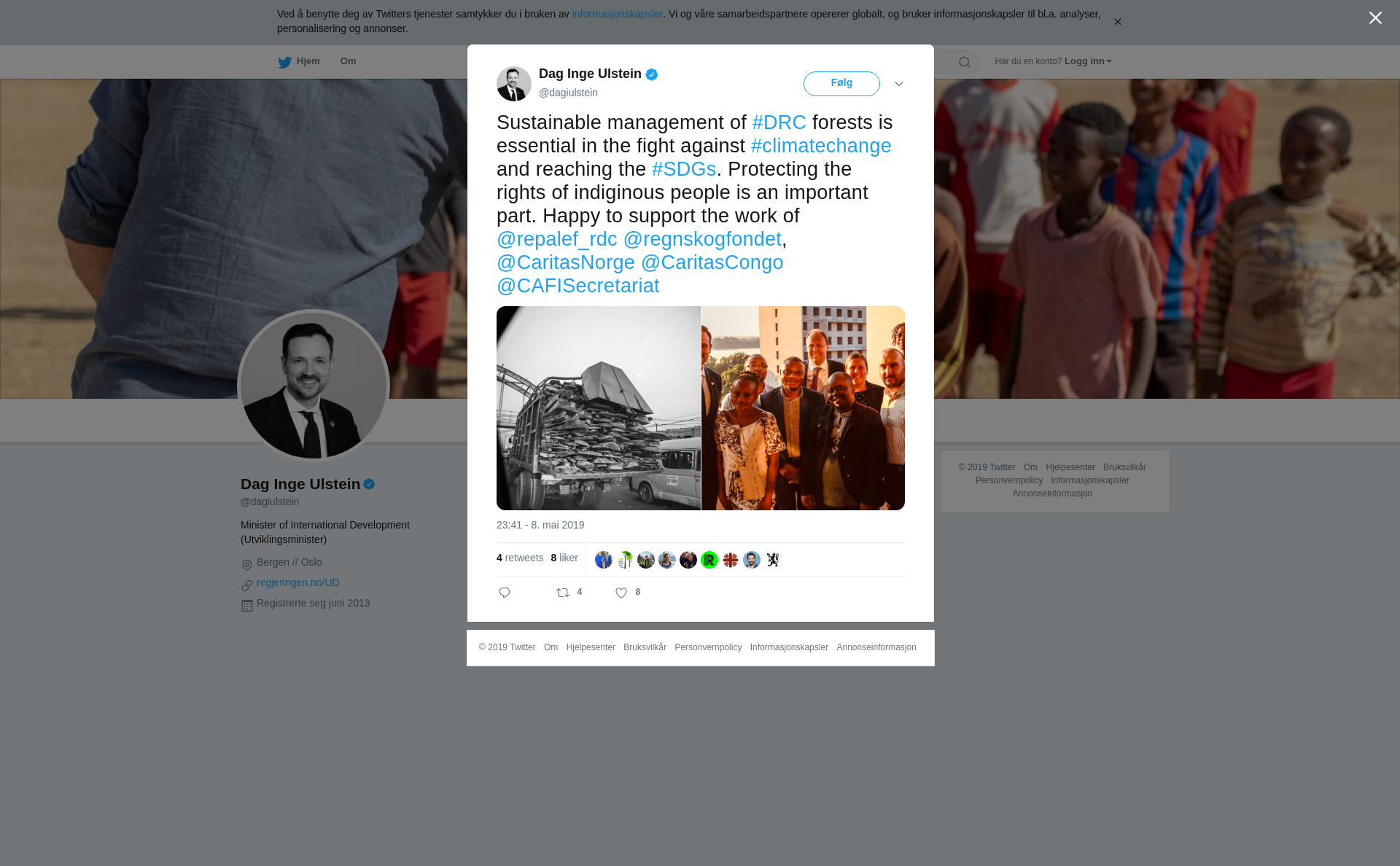 Sustainable management of #DRC forests is essential in the fight against #climatechange and reaching the #SDGs. Protecting the rights of indiginous people is an important part. Happy to support the work of @repalef_rdc @regnskogfondet, @CaritasNorge @CaritasCongo @CAFISecretariat https://t.co/5fOZgqsulc