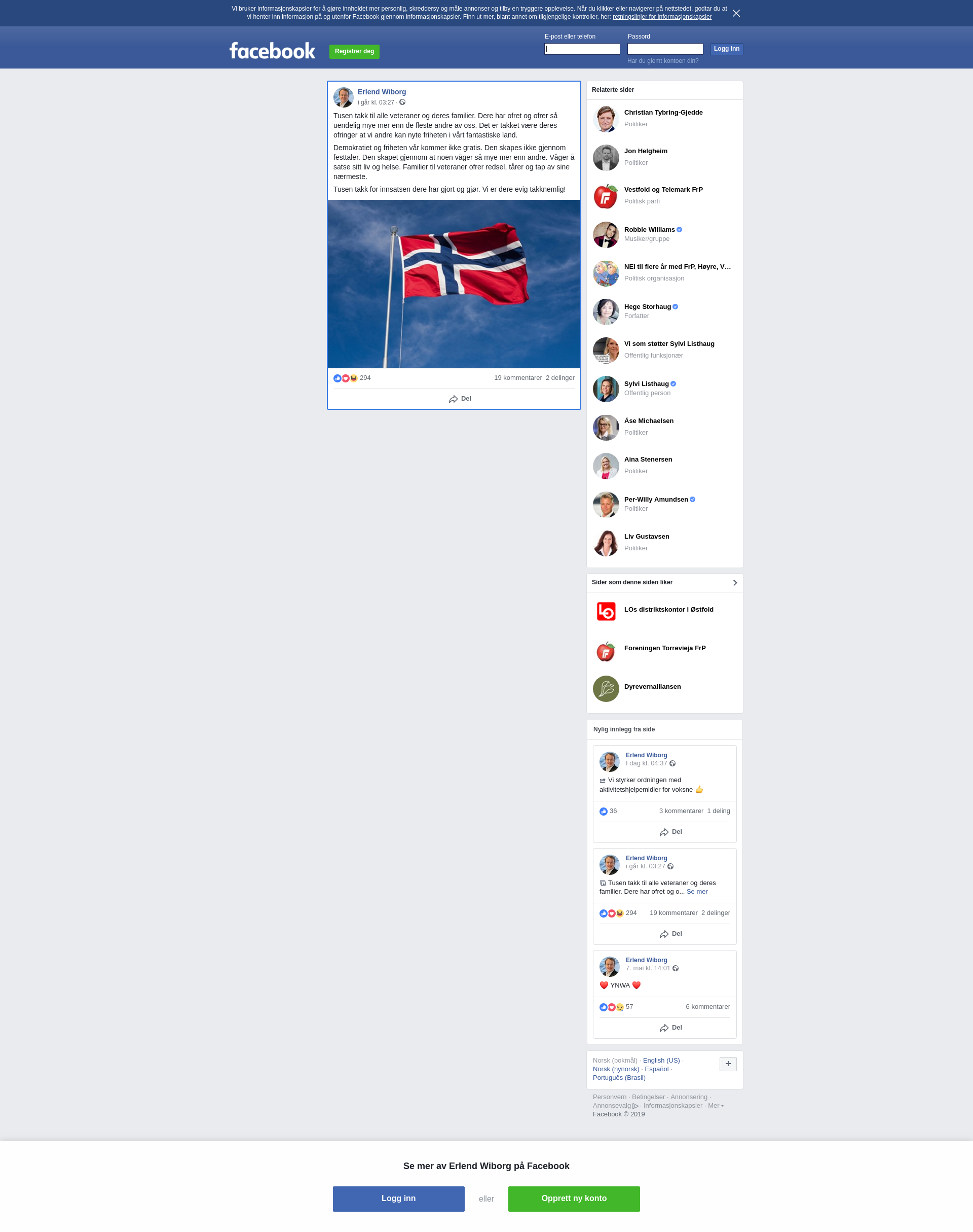 Tusen takk til alle veteraner og deres familier. Dere har ofret og ofrer så uendelig mye mer enn de fleste andre av oss. Det er takket være deres ofringer at vi andre kan nyte friheten i vårt fantastiske land.