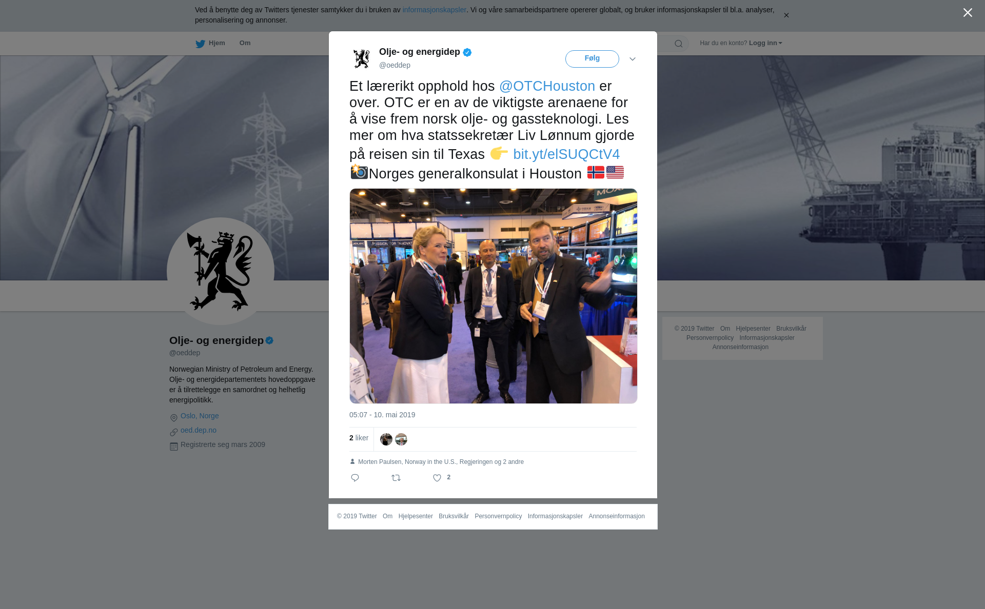 Et lærerikt opphold hos @OTCHouston er over. OTC er en av de viktigste arenaene for å vise frem norsk olje- og gassteknologi. Les mer om hva statssekretær Liv Lønnum gjorde på reisen sin til Texas 👉 https://t.co/n6hhB2QYf6 📸Norges generalkonsulat i Houston 🇳🇴🇺🇸 https://t.co/TYqtXLbima
