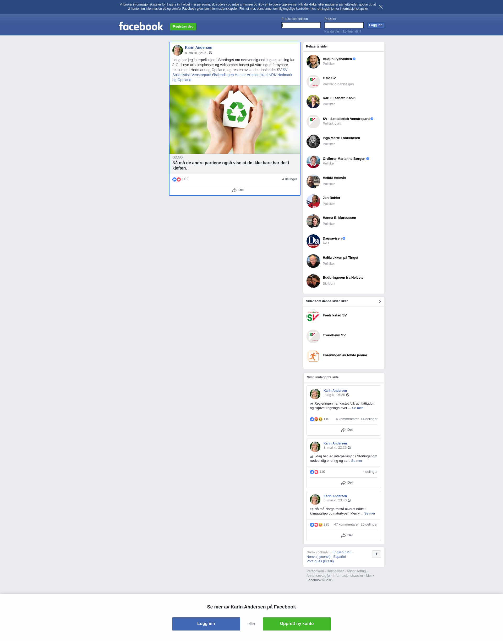 I dag har jeg interpellasjon i Stortinget om nødvendig endring og satsing for å få til nye arbeidsplasser og virksomhet basert på våre egne fornybare ressurser i Hedmark og Oppland, og resten av landet. Innlandet SV SV - Sosialistisk Venstreparti Østlendingen Hamar Arbeiderblad NRK Hedmark og Oppland