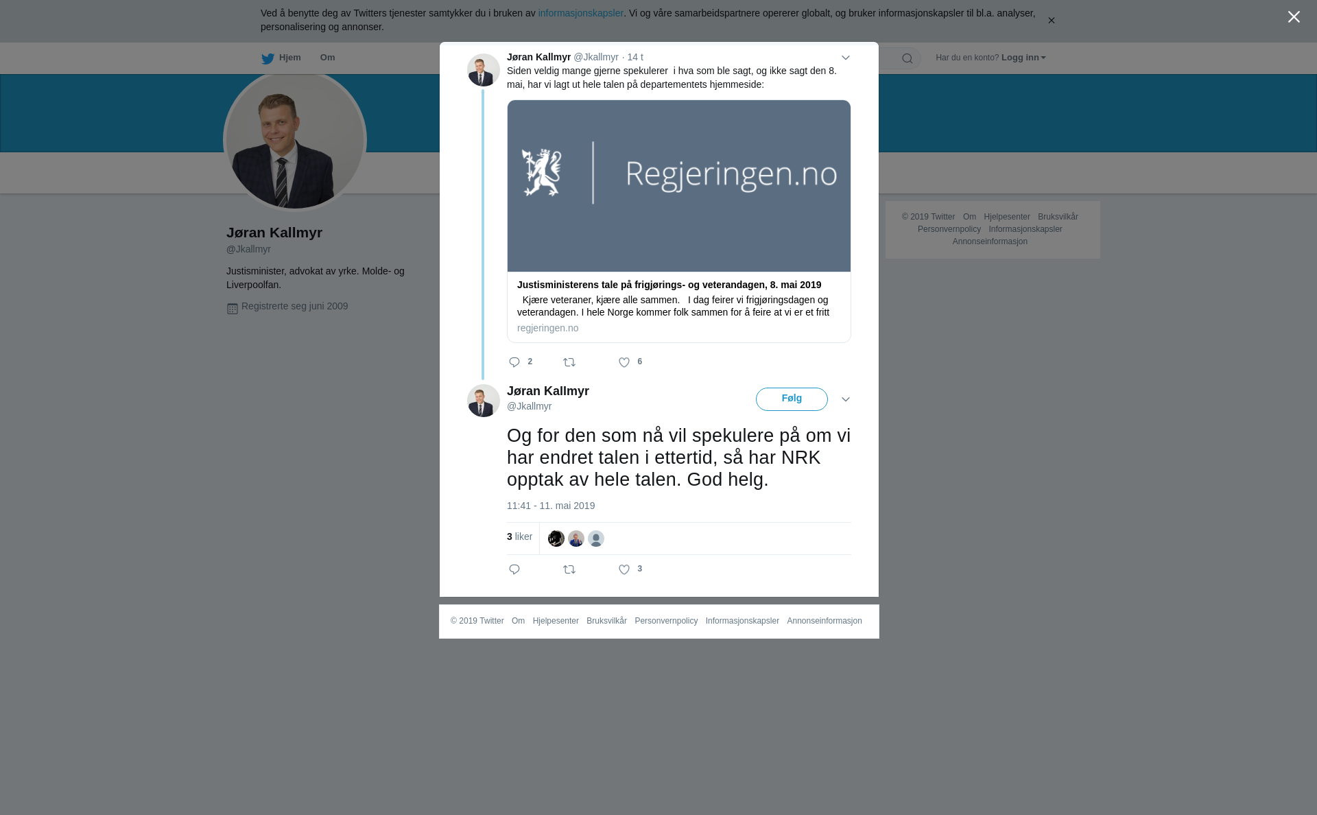 Og for den som nå vil spekulere på om vi har endret talen i ettertid, så har NRK opptak av hele talen. God helg.