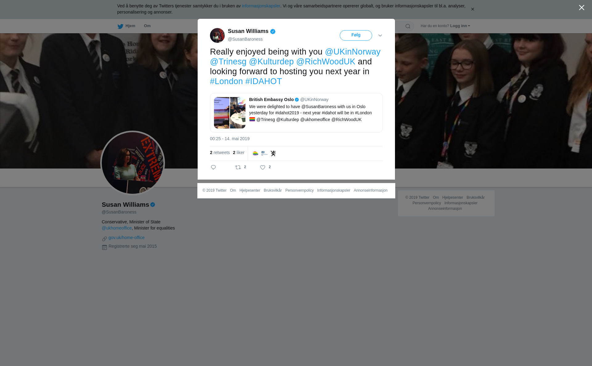 RT @SusanBaroness: Really enjoyed being with you @UKinNorway @Trinesg @Kulturdep @RichWoodUK and looking forward to hosting you next year in #London #IDAHOT https://t.co/axkwzmPPXZ