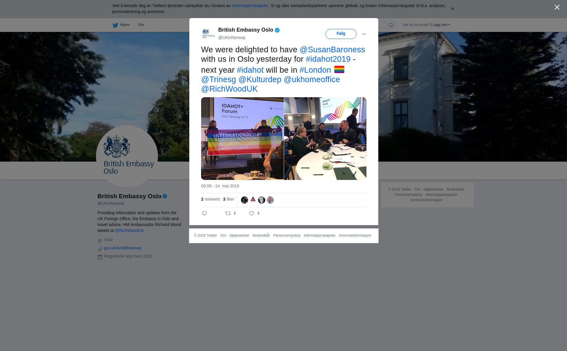 RT @UKinNorway: We were delighted to have @SusanBaroness with us in Oslo yesterday for #idahot2019 - next year #idahot will be in #London 🏳️🌈 @Trinesg @Kulturdep @ukhomeoffice @RichWoodUK https://t.co/VpntL0W4qI