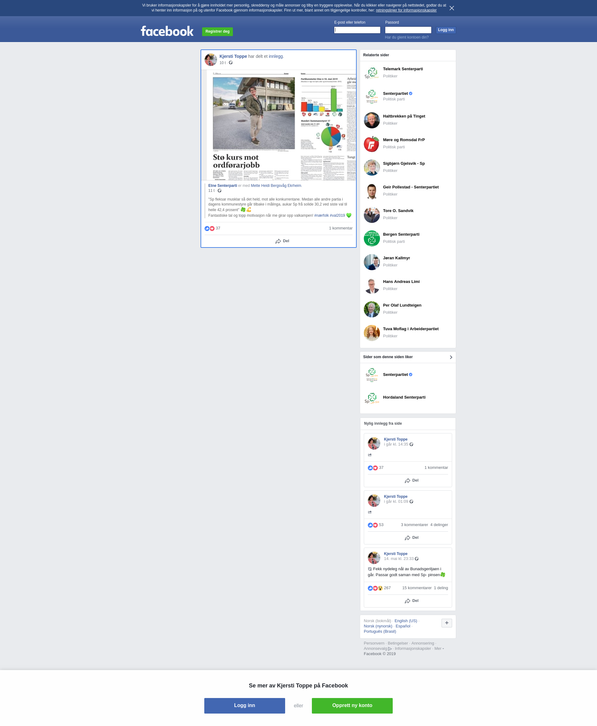 "Sp fleksar musklar så det held, mot alle konkurrentane. Medan alle andre partia i dagens kommunestyre går tilbake i målinga, aukar Sp frå solide 30,2 ved siste val til heile 42,4 prosent" 🍀💪