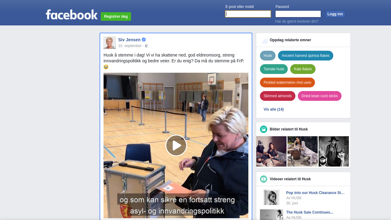 Siv.Jensen.FrP på Facebook