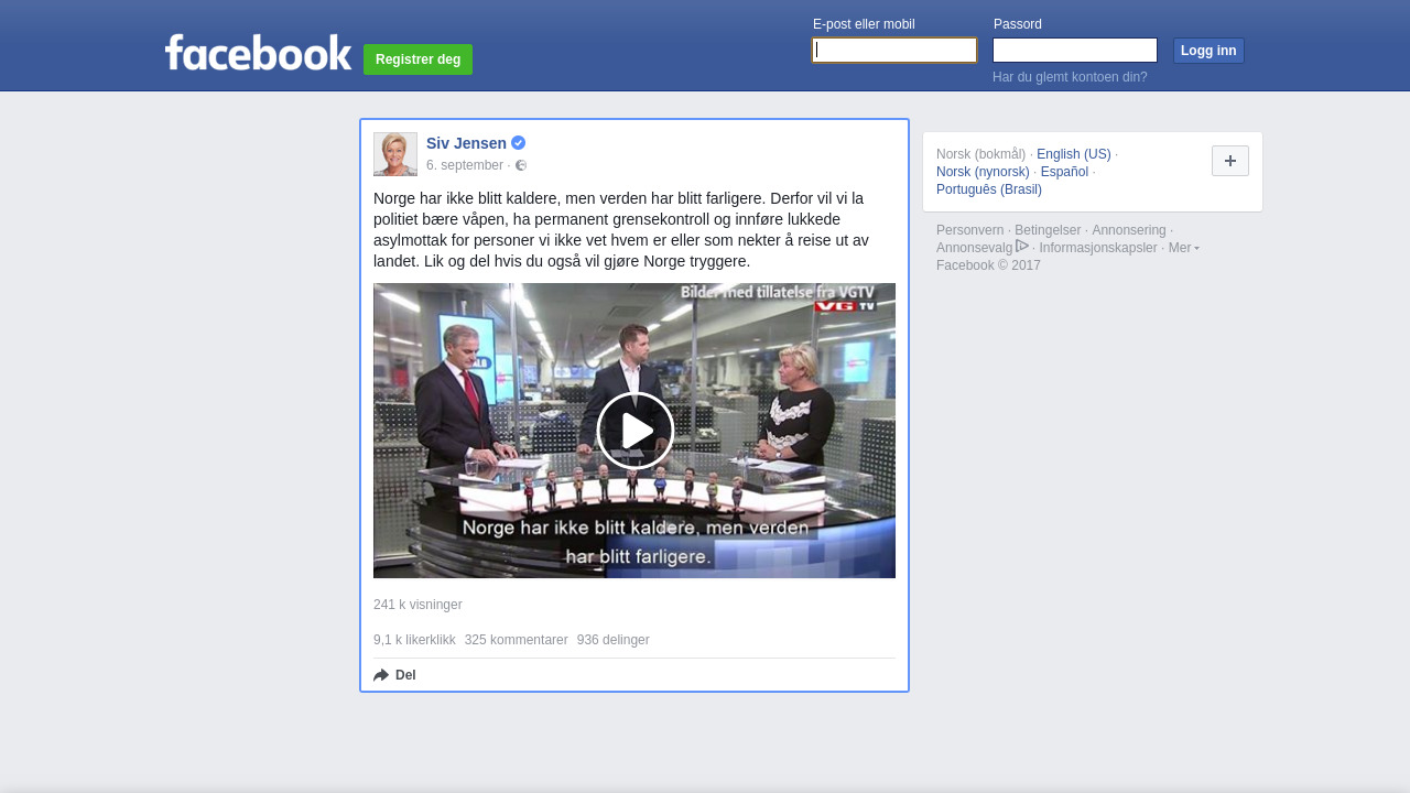 Norge har ikke blitt kaldere, men verden har blitt farligere. Derfor vil vi la politiet bære våpen, ha permanent grensekontroll og innføre lukkede asylmottak for personer vi ikke vet hvem er eller som nekter å reise ut av landet. Lik og del hvis du også vil gjøre Norge tryggere.