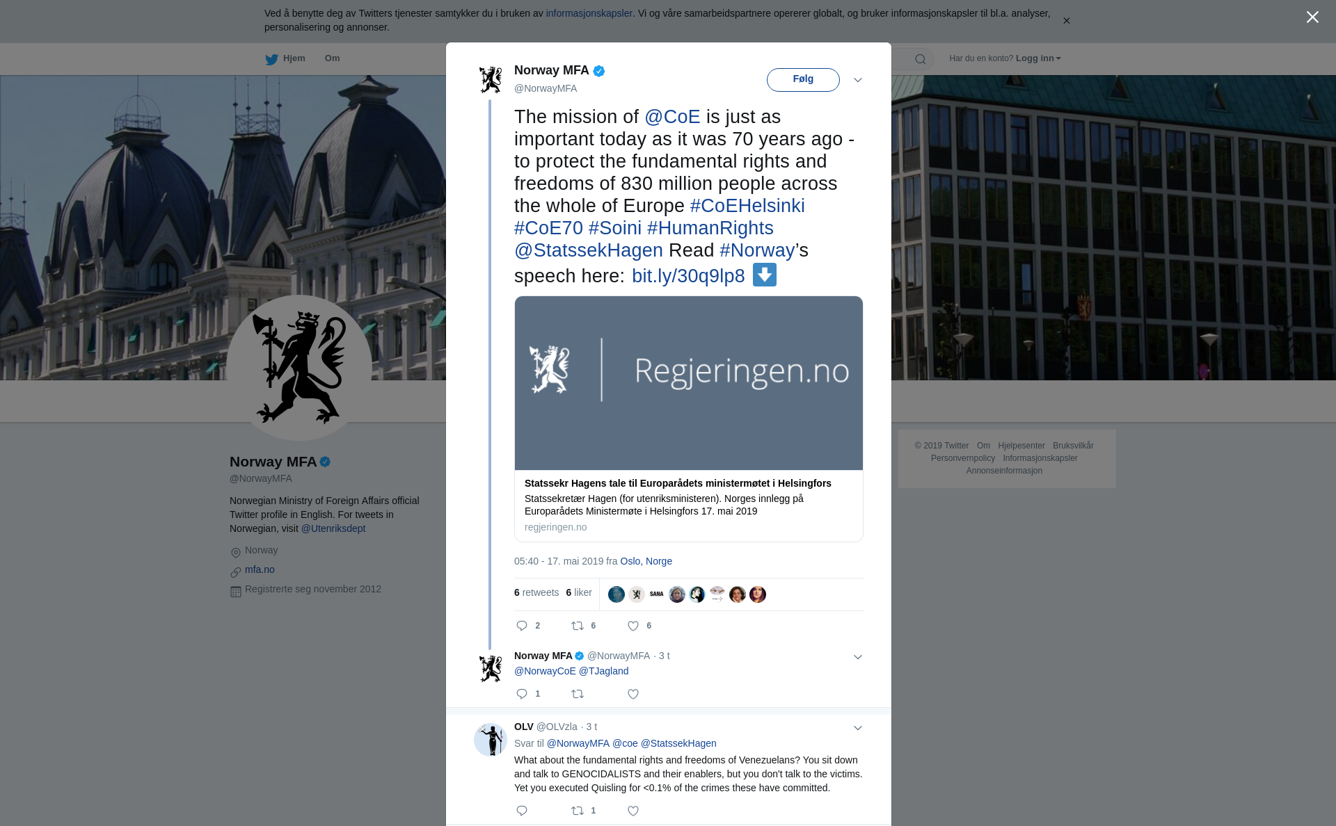 The mission of @CoE is just as important today as it was 70 years ago - to protect the fundamental rights and freedoms of 830 million people across the whole of Europe #CoEHelsinki #CoE70 #Soini #HumanRights @StatssekHagen Read #Norway’s speech here: https://t.co/Rxp8GKUOmS ⬇️