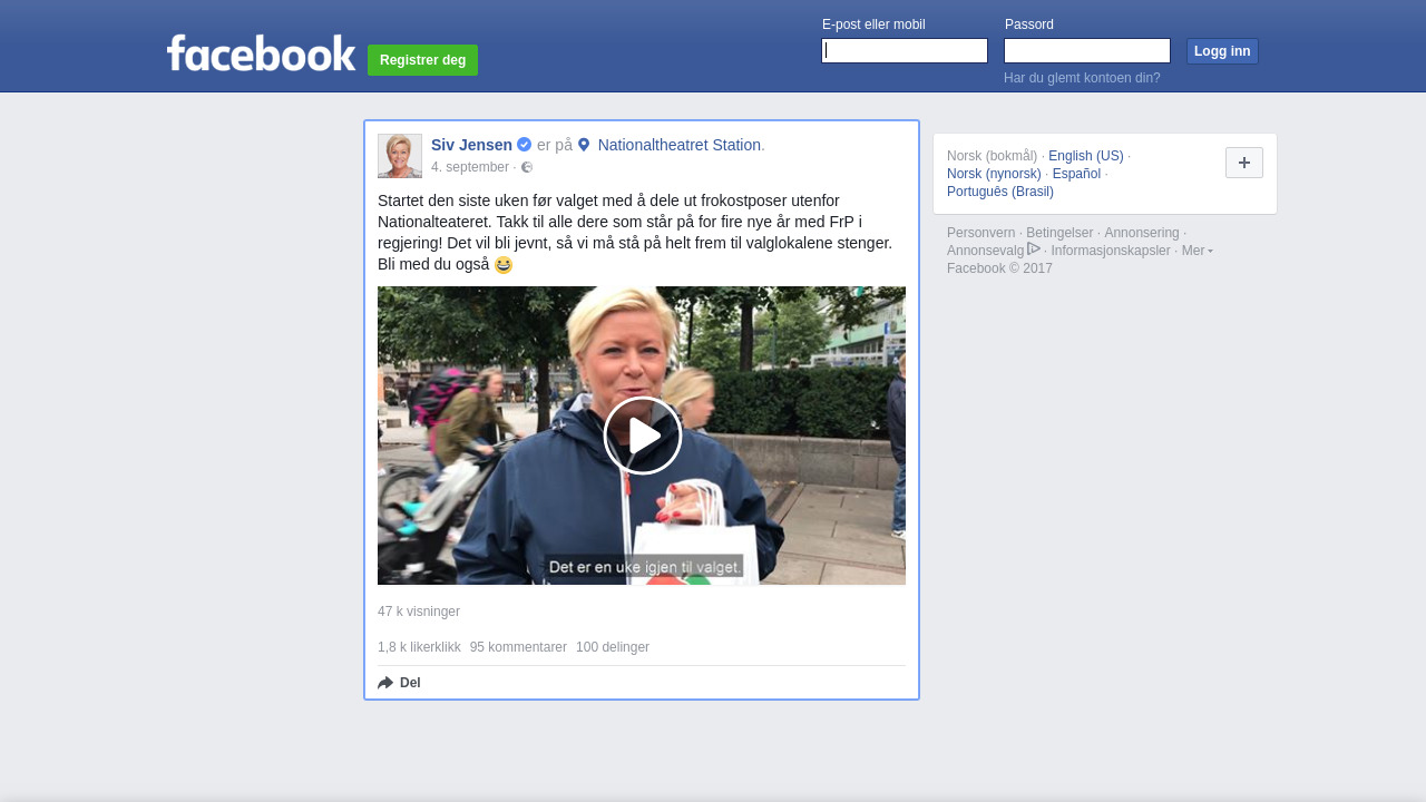 Startet den siste uken før valget med å dele ut frokostposer utenfor Nationalteateret. Takk til alle dere som står på for fire nye år med FrP i regjering! Det vil bli jevnt, så vi må stå på helt frem til valglokalene stenger. Bli med du også 😀