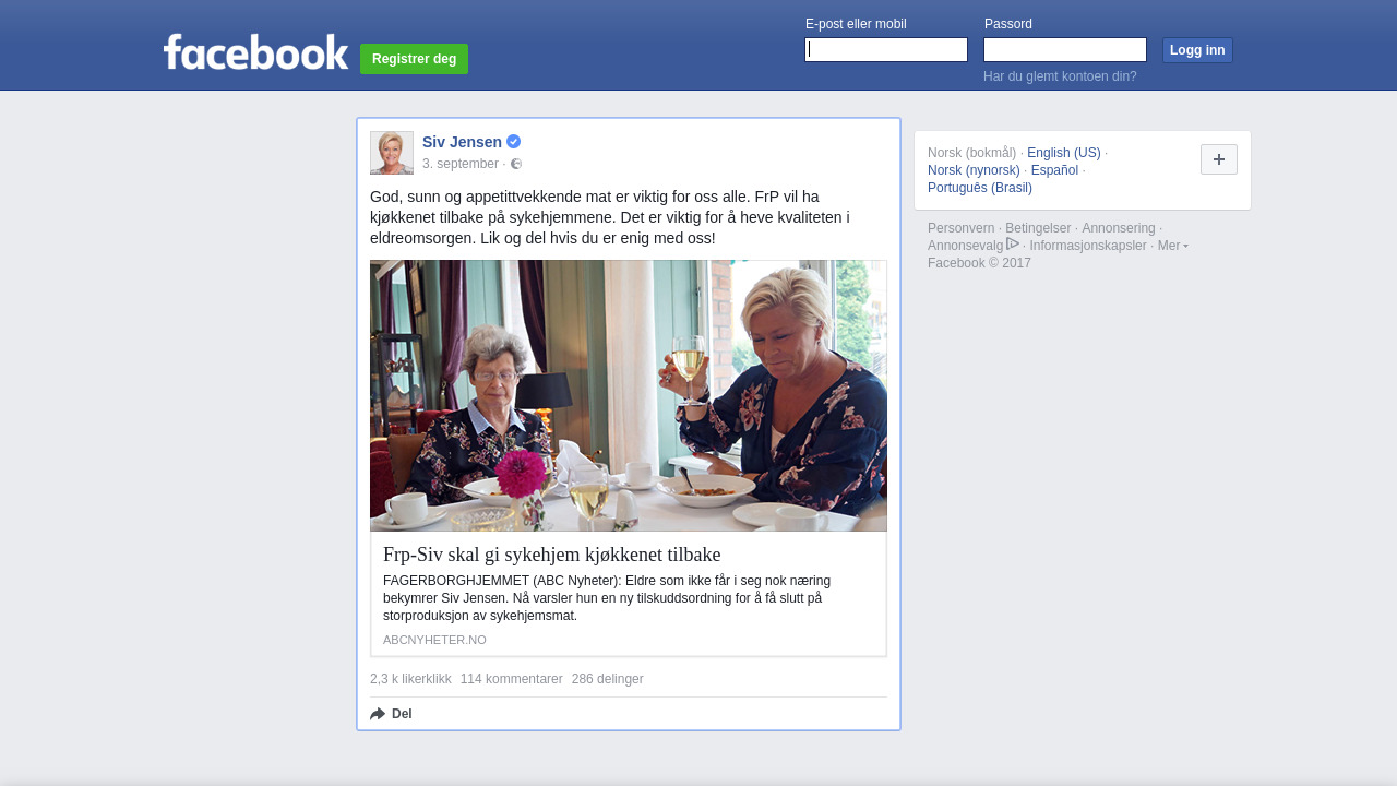 God, sunn og appetittvekkende mat er viktig for oss alle. FrP vil ha kjøkkenet tilbake på sykehjemmene. Det er viktig for å heve kvaliteten i eldreomsorgen. Lik og del hvis du er enig med oss!