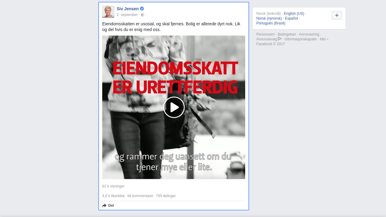 Siv.Jensen.FrP på Facebook