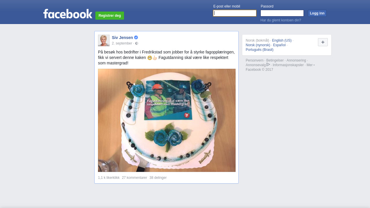 På besøk hos bedrifter i Fredrikstad som jobber for å styrke fagopplæringen, fikk vi servert denne kaken 😁👍🏻 Fagutdanning skal være like respektert som mastergrad!