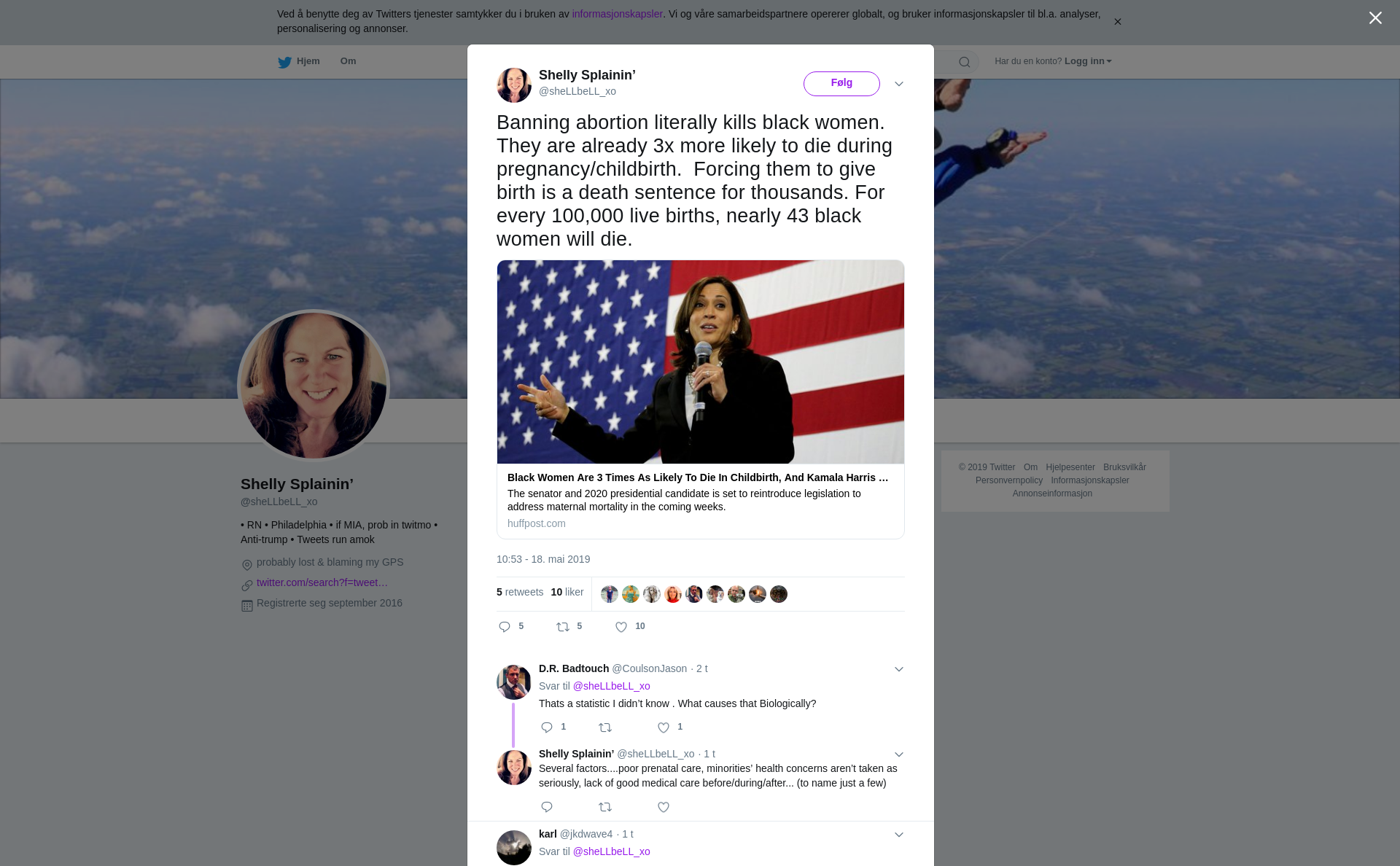 RT @sheLLbeLL_xo: Banning abortion literally kills black women. They are already 3x more likely to die during pregnancy/childbirth. Forcing them to give birth is a death sentence for thousands. For every 100,000 live births, nearly 43 black women will die. https://t.co/Mxjs5S60AL