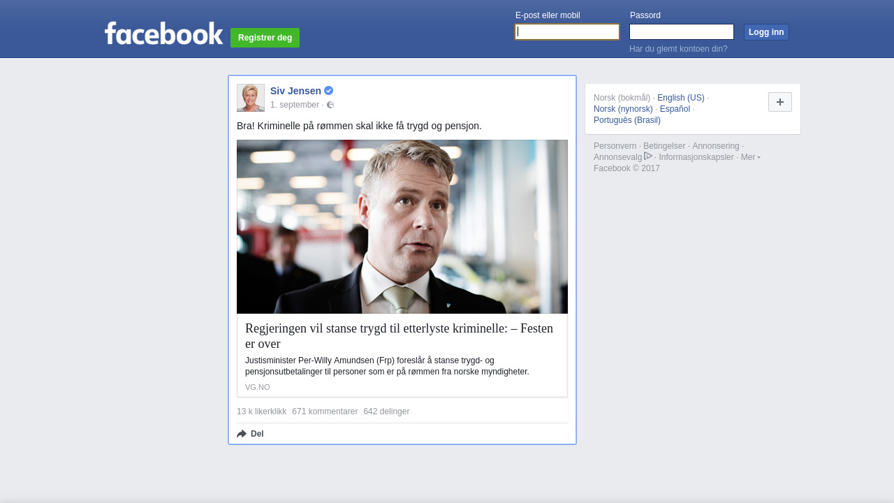 Bra! Kriminelle på rømmen skal ikke få trygd og pensjon.