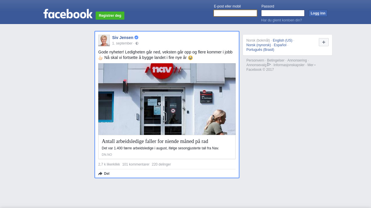 Siv.Jensen.FrP på Facebook