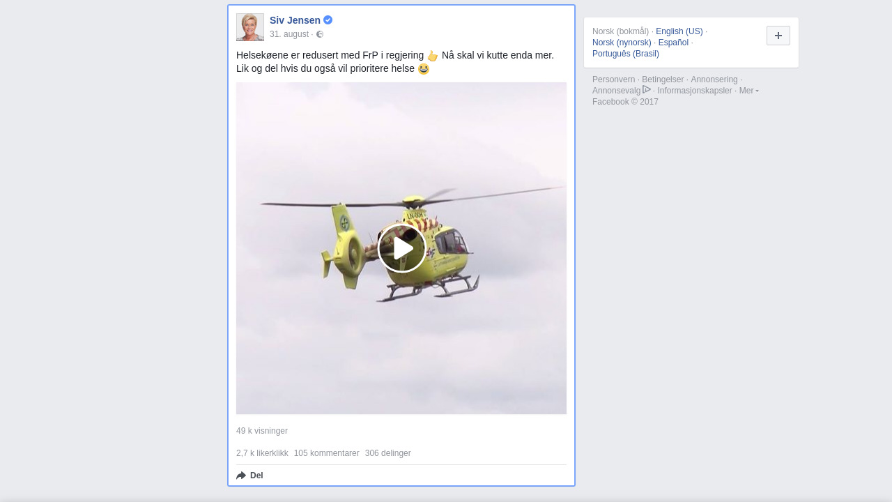 Helsekøene er redusert med FrP i regjering 👍 Nå skal vi kutte enda mer. Lik og del hvis du også vil prioritere helse 😀