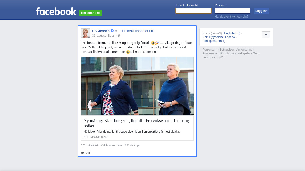 Ny måling: Klart borgerlig flertall - Frp vokser etter Listhaug-bråket